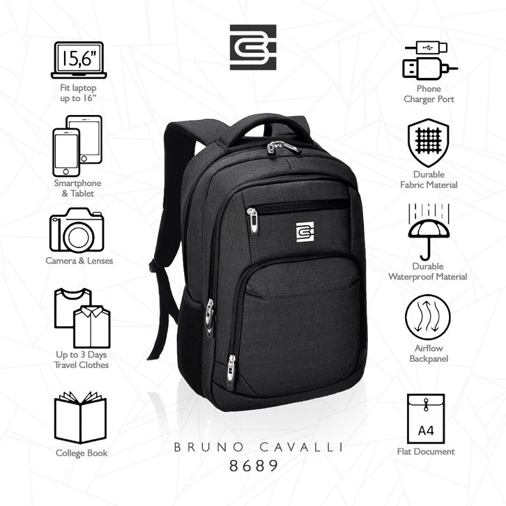 Bruno Cavalli Forte s 8689 26L Tas Ransel Laptop Anti Air9ratis Rain Cover dan USB Port Extension Tas Ransel Pria