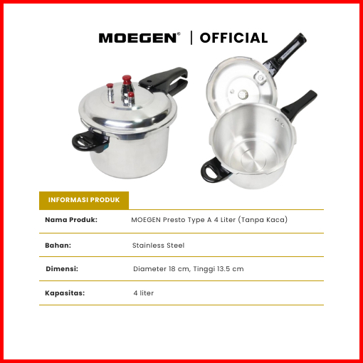 Moegen Panci Presto Type A 4 Liter Pelunak Daging Presto Serbaguna
