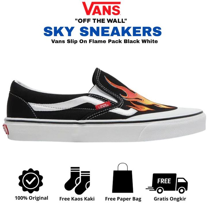 [Mall] SEPATU VANS ORIGINAL SNEAKER PRIA WANITA SEPATU VANS SLIP ON FLAME PACK BLACK WHITE SEPATU KASUAL AUTHENTIC