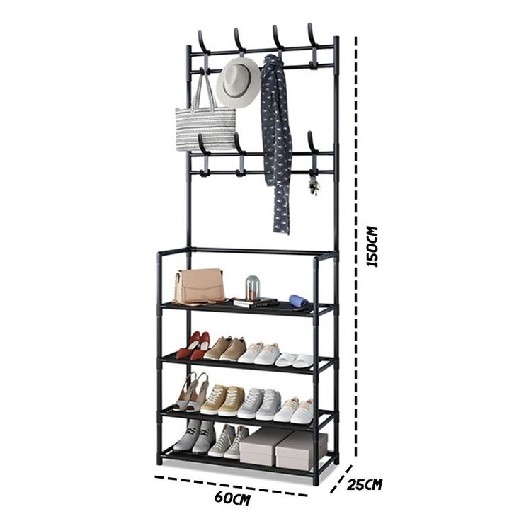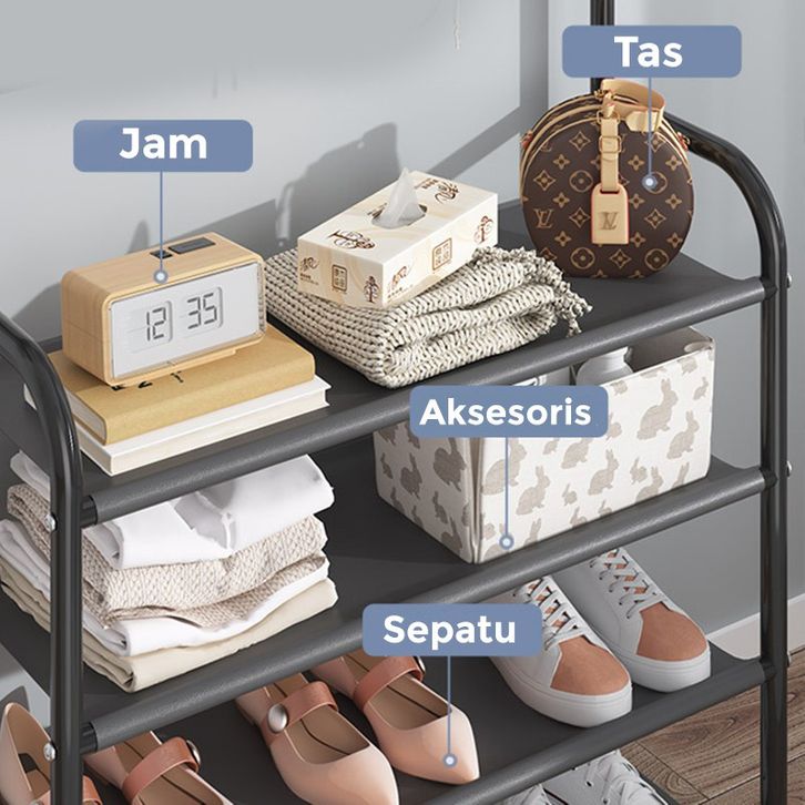 GRATIS ONGKIRRak penyimpanan 4 Tingkat Hitam Silver Rak Dapur Microwave Kamar Rak Serba Serbi Rak Sepatu rak gantungan
