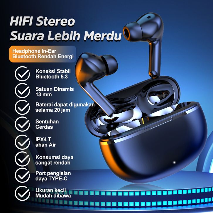 KIVEE TWS Earphone Bluetooth 5.3 Headset BLACK Gaming Music With Noise Cancellation