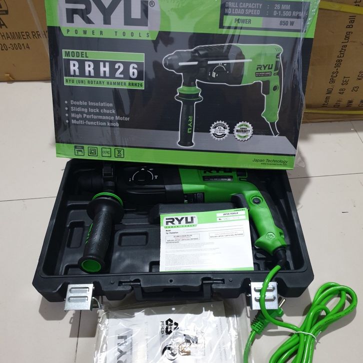 MESIN BOR LISTRIK RYU RRH-26 HEAVY DUTY BETON BOBOK SDS PLUS ROTARY HAMMER ORIGINAL