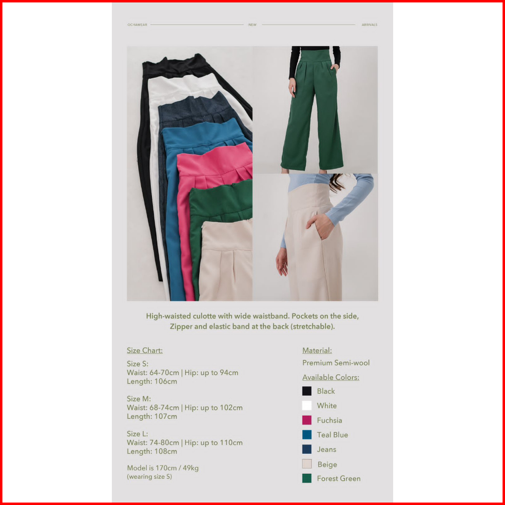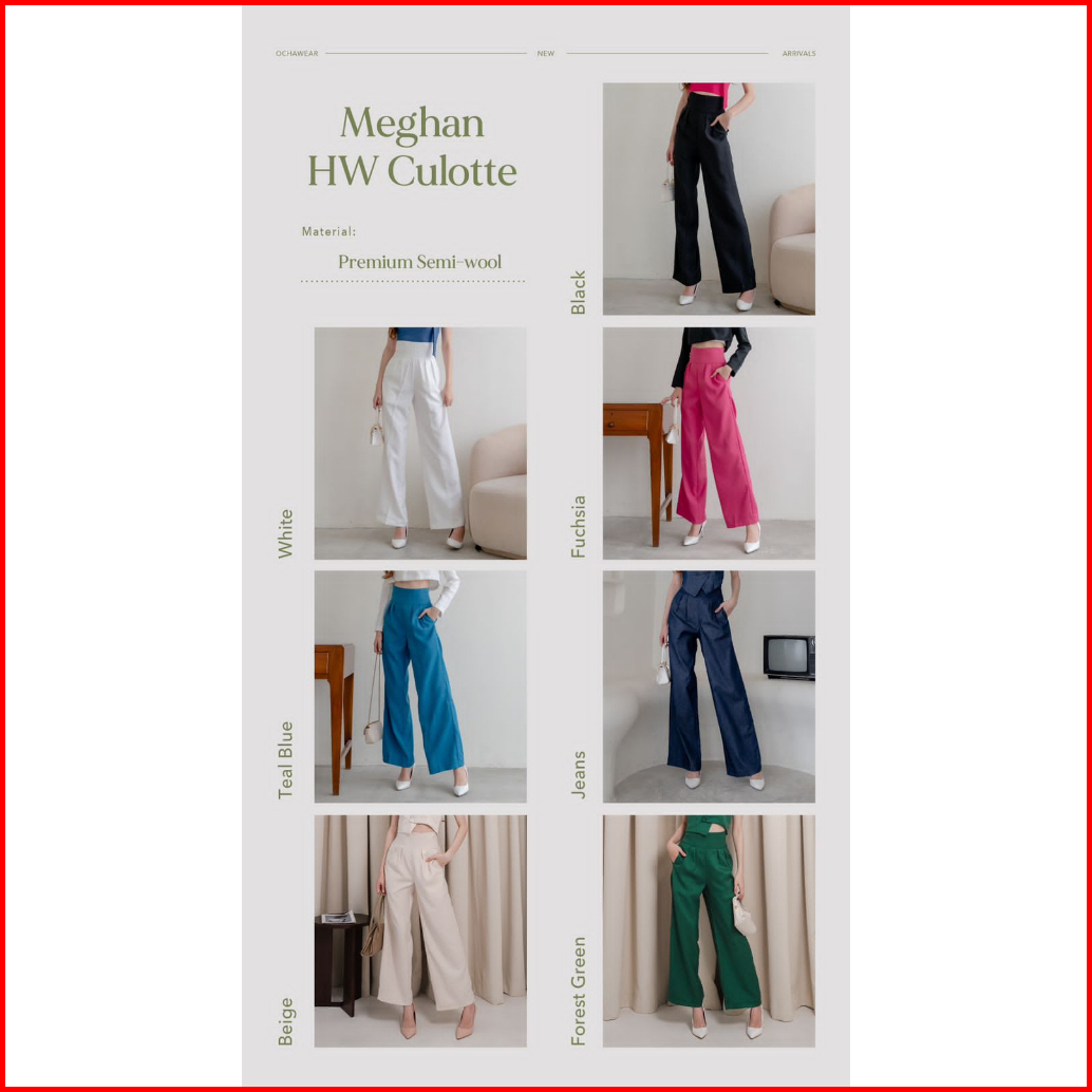 Meghan Hw Culotte Ocha Wear High Waist Cullote Celana Panjang Kulot Wanita Cargo Pants Premium