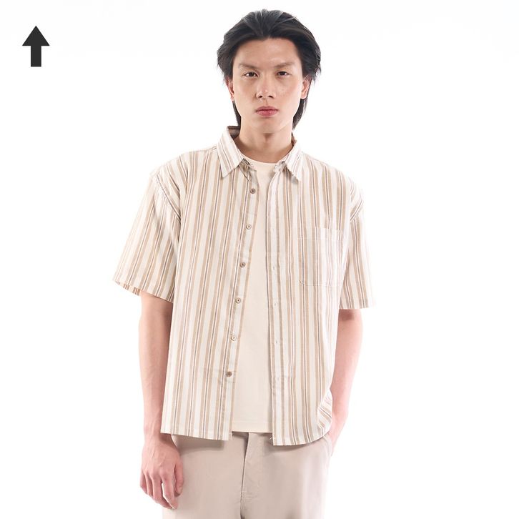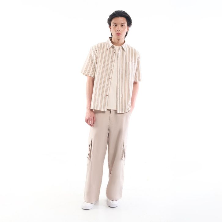 KEMEJA STRIPE PRIA LENGAN PENDEK BAHAN PREMIUM TIDAK NERAWANG TERLARIS