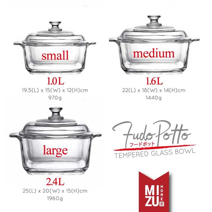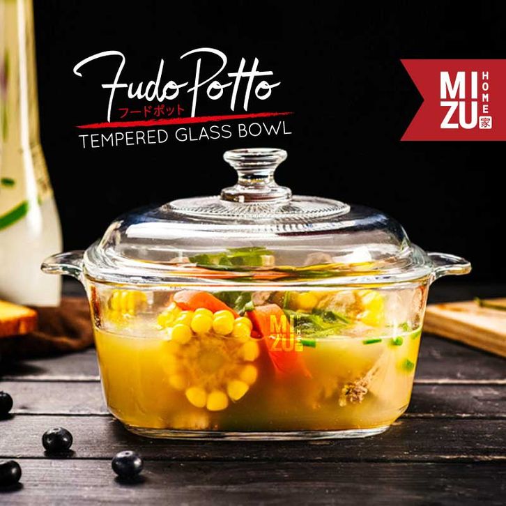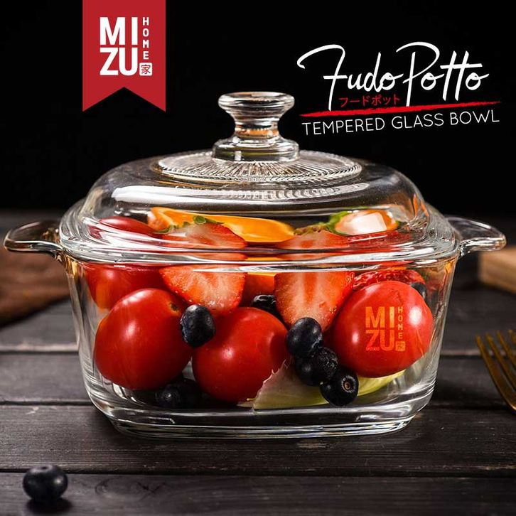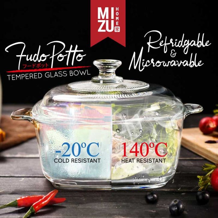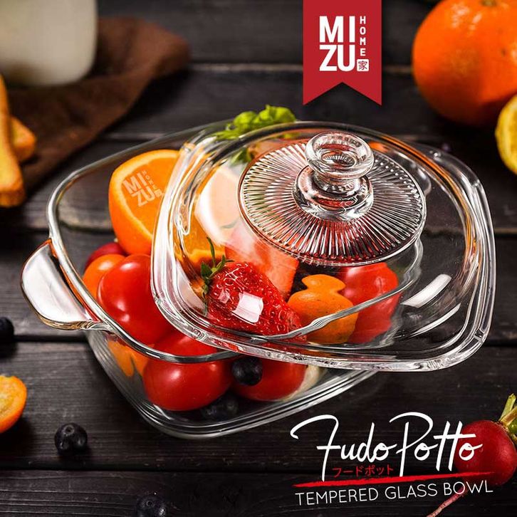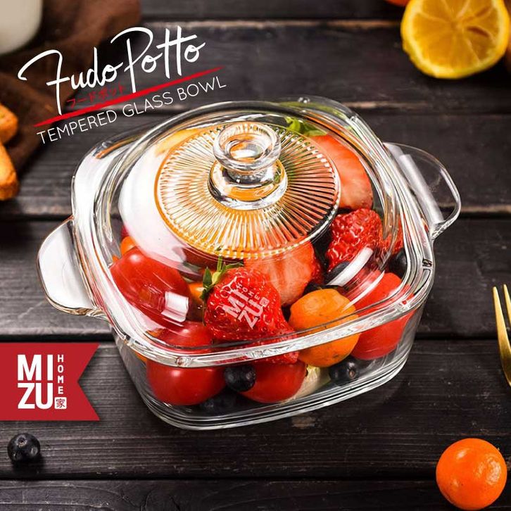MIZU FUDOPOTTO Tempered Glass Bowl Mangkuk Saji Kaca Bening Mangkok Makan Kaca Tempered