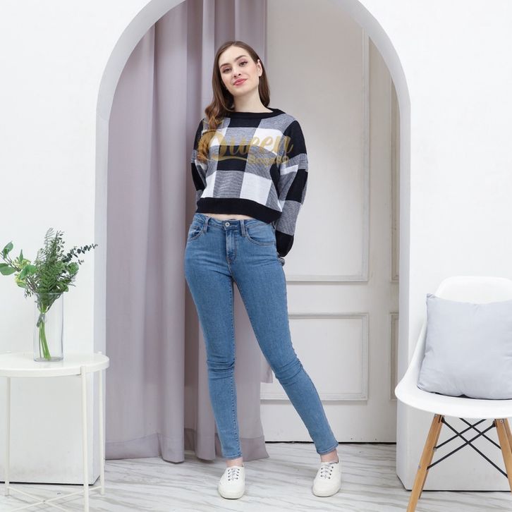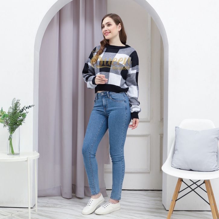Atasan Blouse Rajut Wanita Dewasa Sweater Crop Top Lengan Panjang Cewek Korean Style Rajut Premium Tinggi