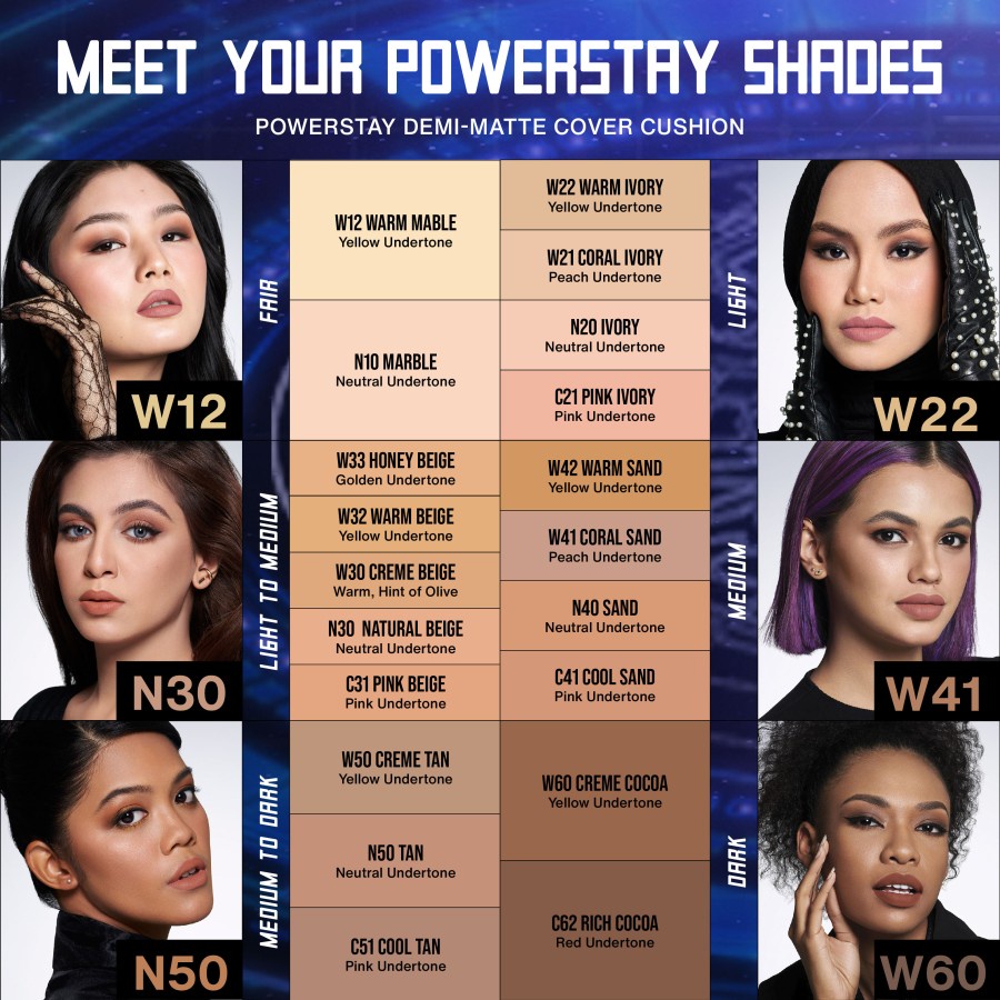 C11 Pink Marble, C21 Pink Ivory, C31 PINK BEIGE, C41 COOL SAND, C51 COOL TAN, C62 RICH COCOA, N00 Porcelain, N10 Marble, N20 IVORY, N30 Natural Beige, N40 SAND, N50 Tan, N70 Ebony, W12 WARM MARBLE, W20 Creme Ivory, W21 CORAL IVORY, W22 Warm Ivory, W30 CREME BEIGE, W32 WARM BEIGE, W33 Honey Beige, W40 Creme Sand, W41 Coral Sand, W42 Warm Sand, W50 CREME TAN, W60 CREME COCOA