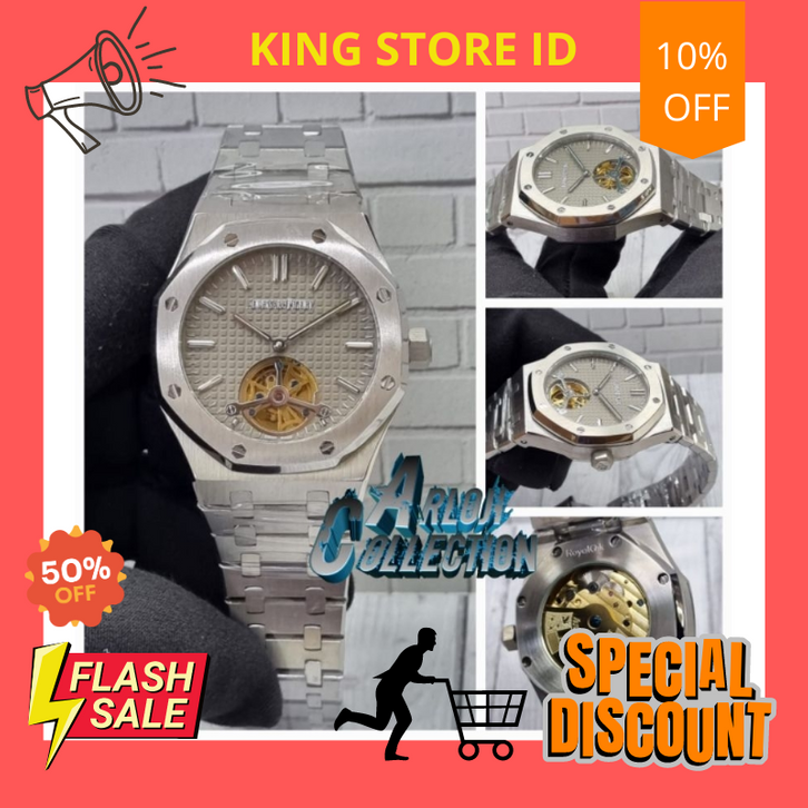 JAM TANGAN PRIA AP EXTRA ULTRATHIN TOURBILON SILVER BLACK DIAL AUTOMATIC MENS JAM TANGAN PRIA ANTI AIR JAM TANGAN BRANDE