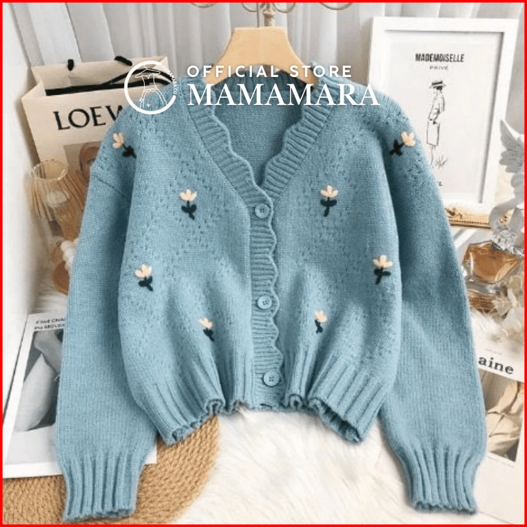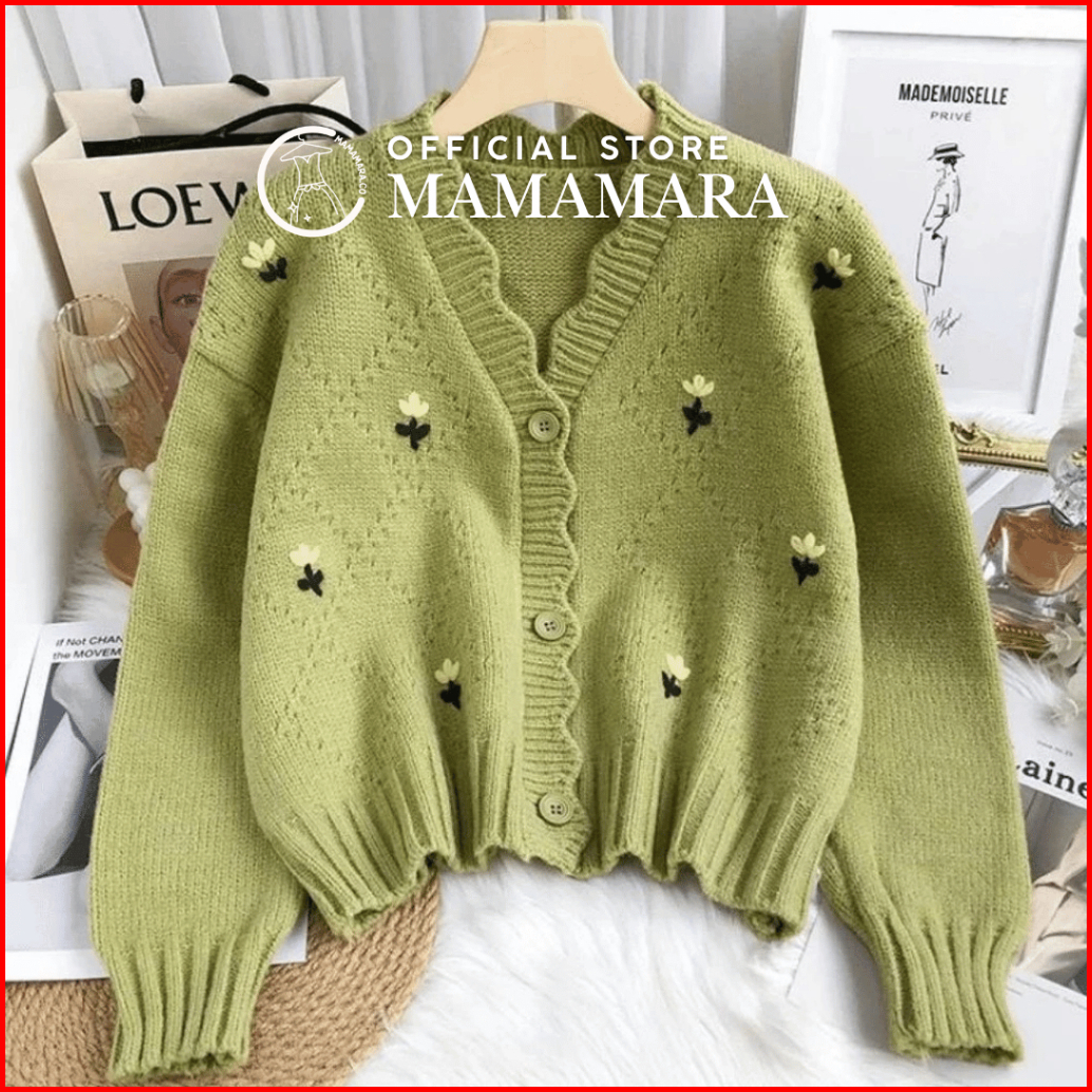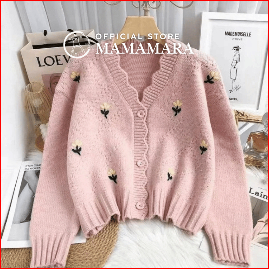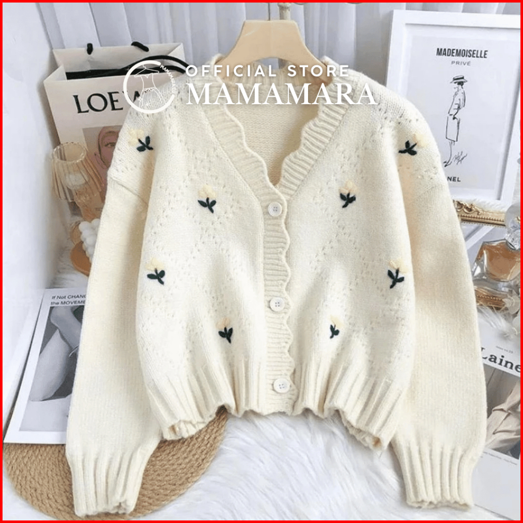 Mamamara - Cardigan Crop Flower Premium Wanita Atasan Rajut Sweater Knitwear Outer
