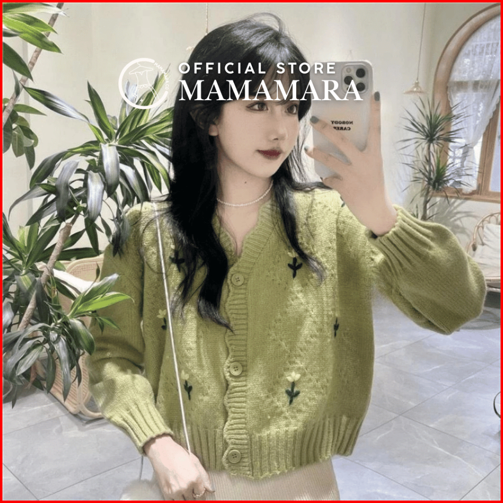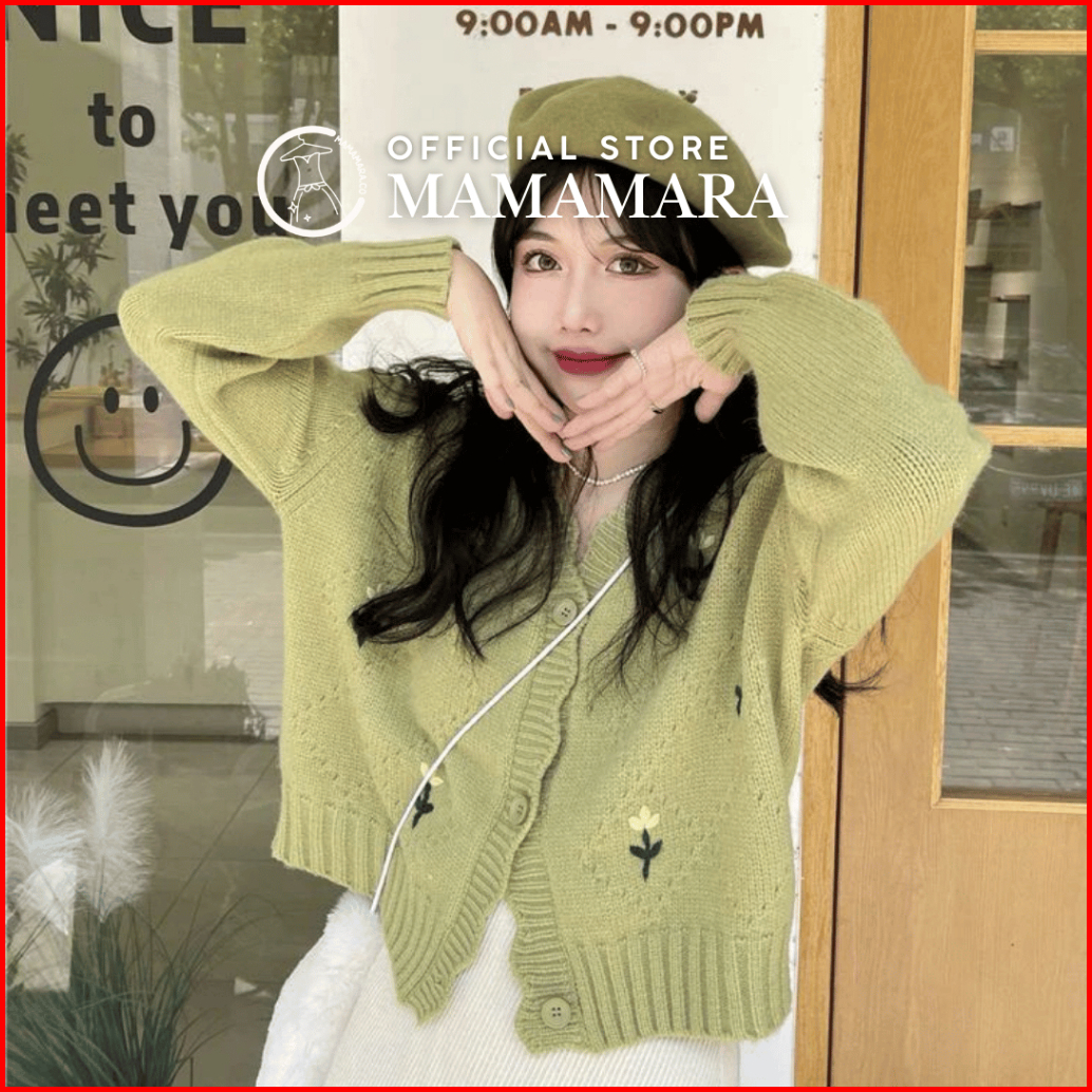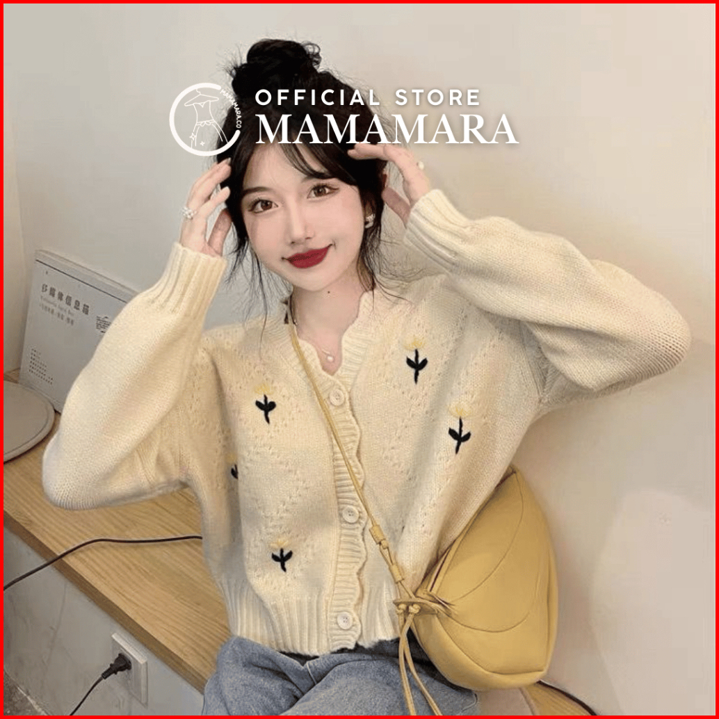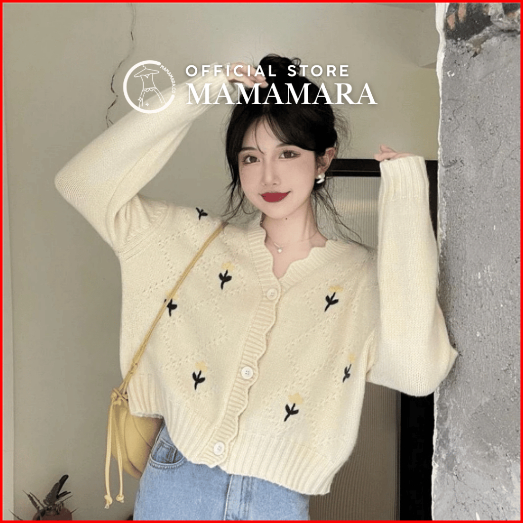 Mamamara - Cardigan Crop Flower Premium Wanita Atasan Rajut Sweater Knitwear Outer