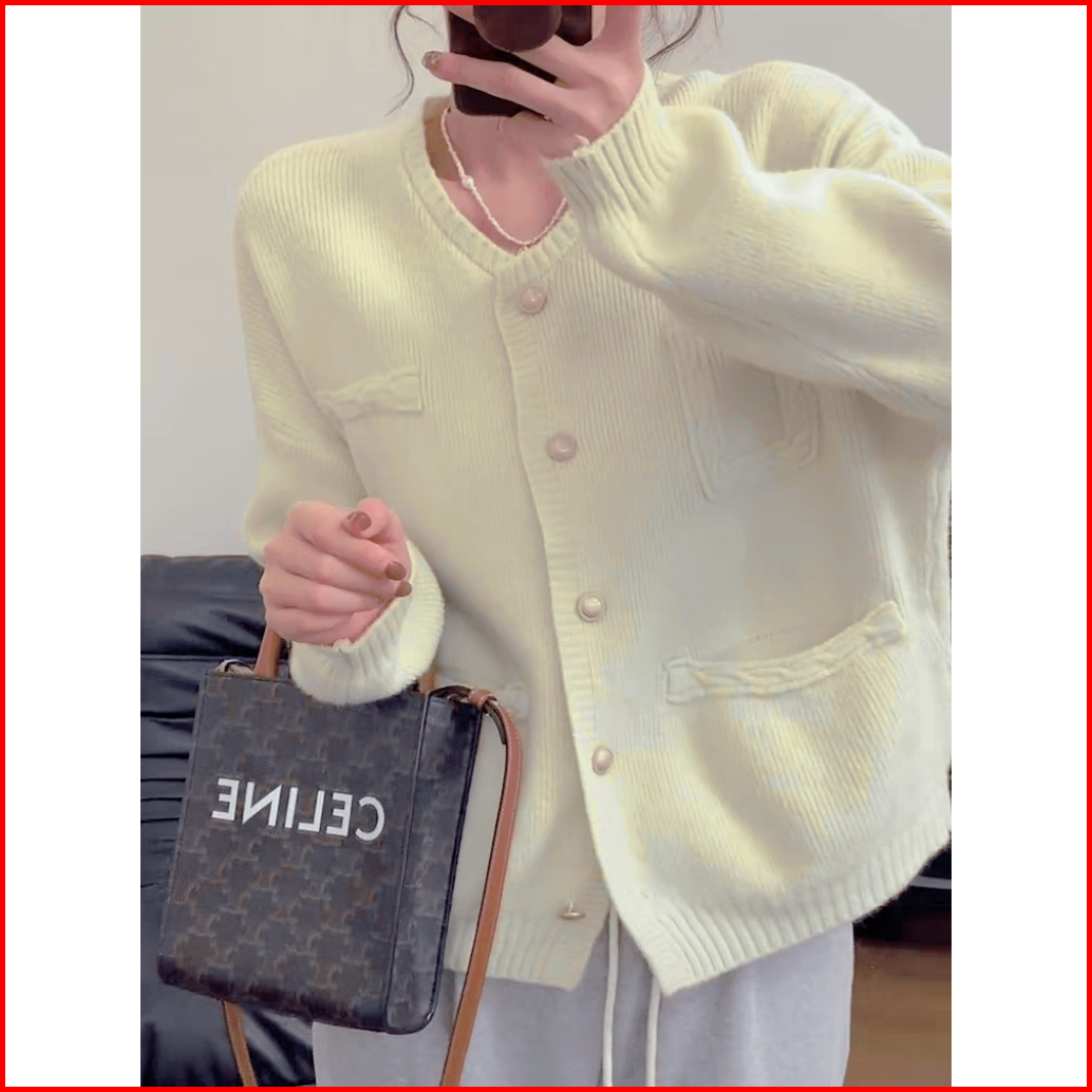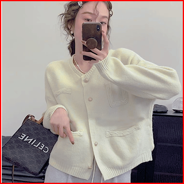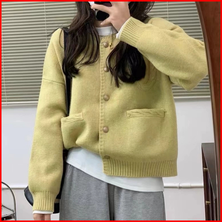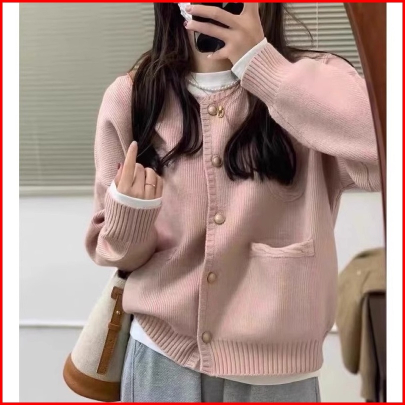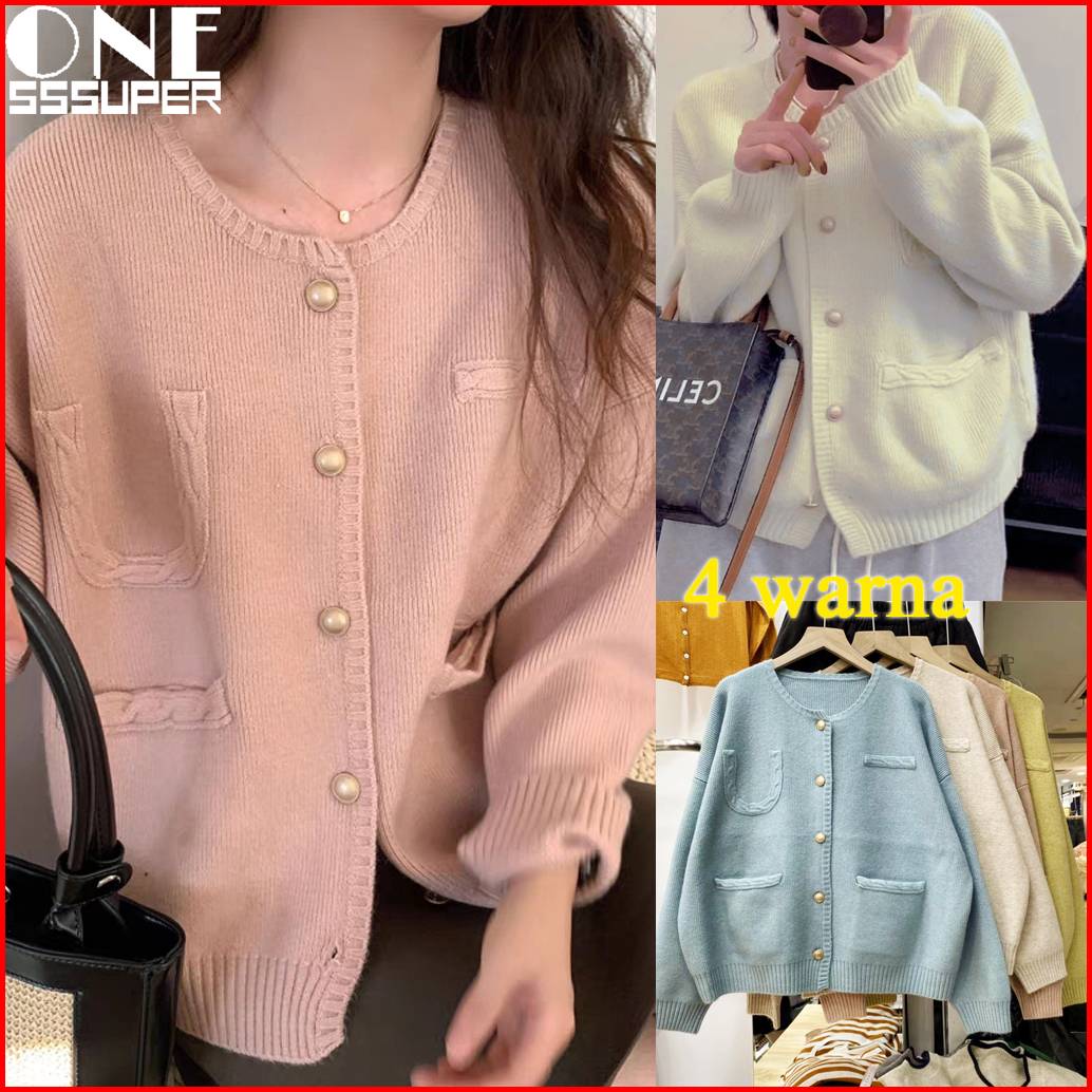 Sweater Rajut Wanita Ala Korea Kardigan Rajutan Lembut Warna Solid Yang Modis Sweater Rajutan Longgar Kerah Awak Lengan