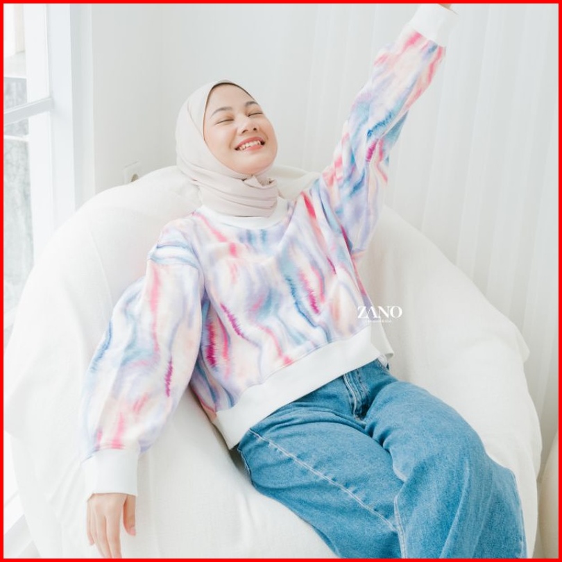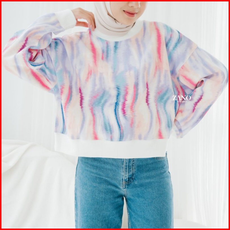 Zano Basics Sweater Crop Ocean Tie Dye Fleece