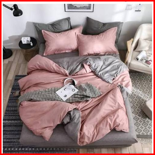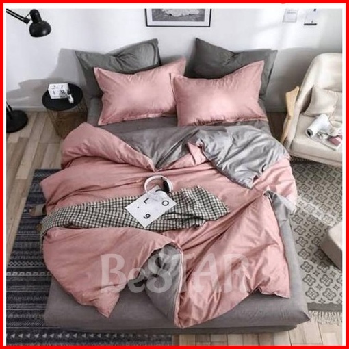 Bedcover Set Sprei Two Tone Korean Style Aesthetic Polosan Bisa Mix Warna