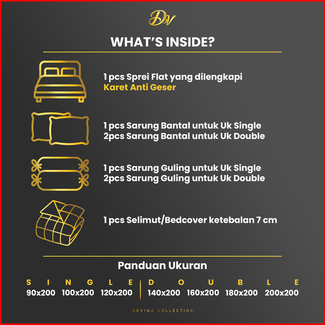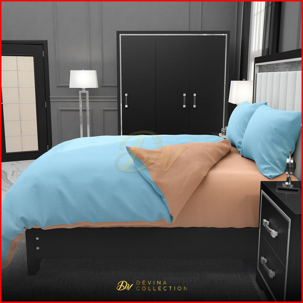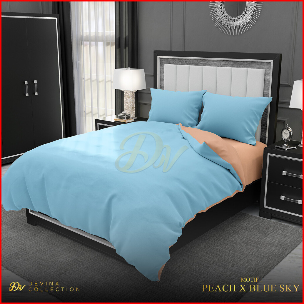 Devina Collection Bedcover Sprei Set Karet Anti Geser Two Tone Peach Mix Blue Sky Uk King 180x200