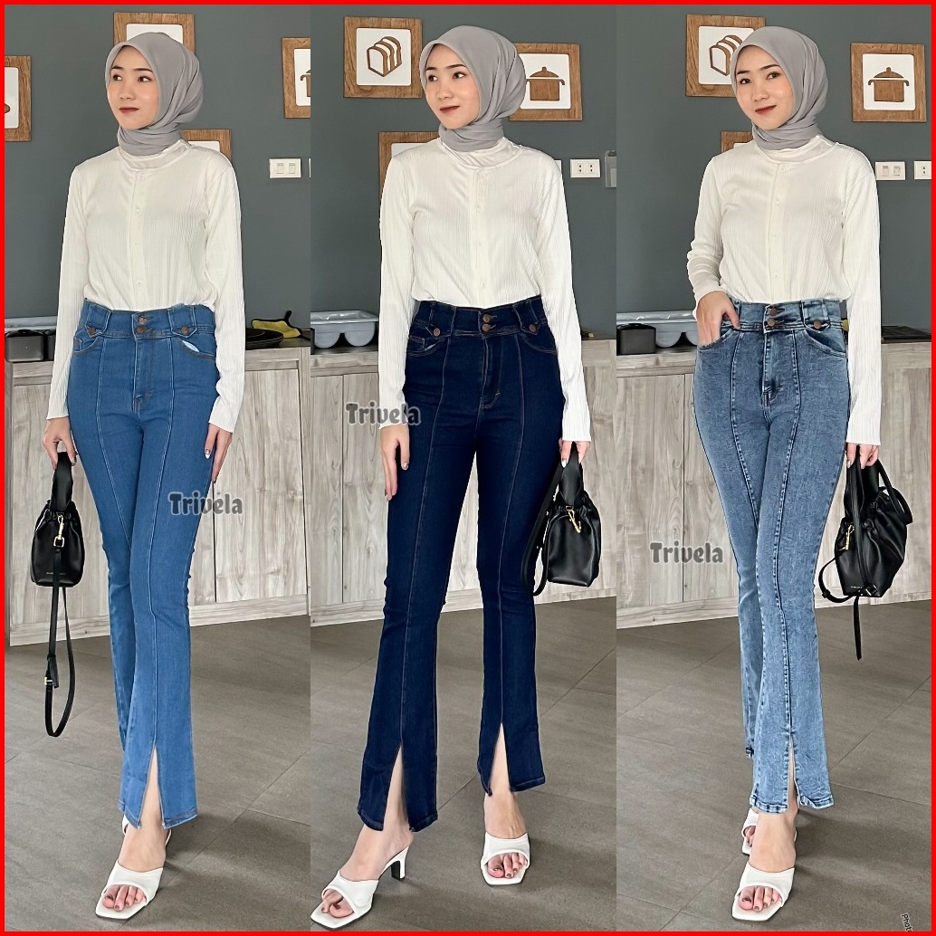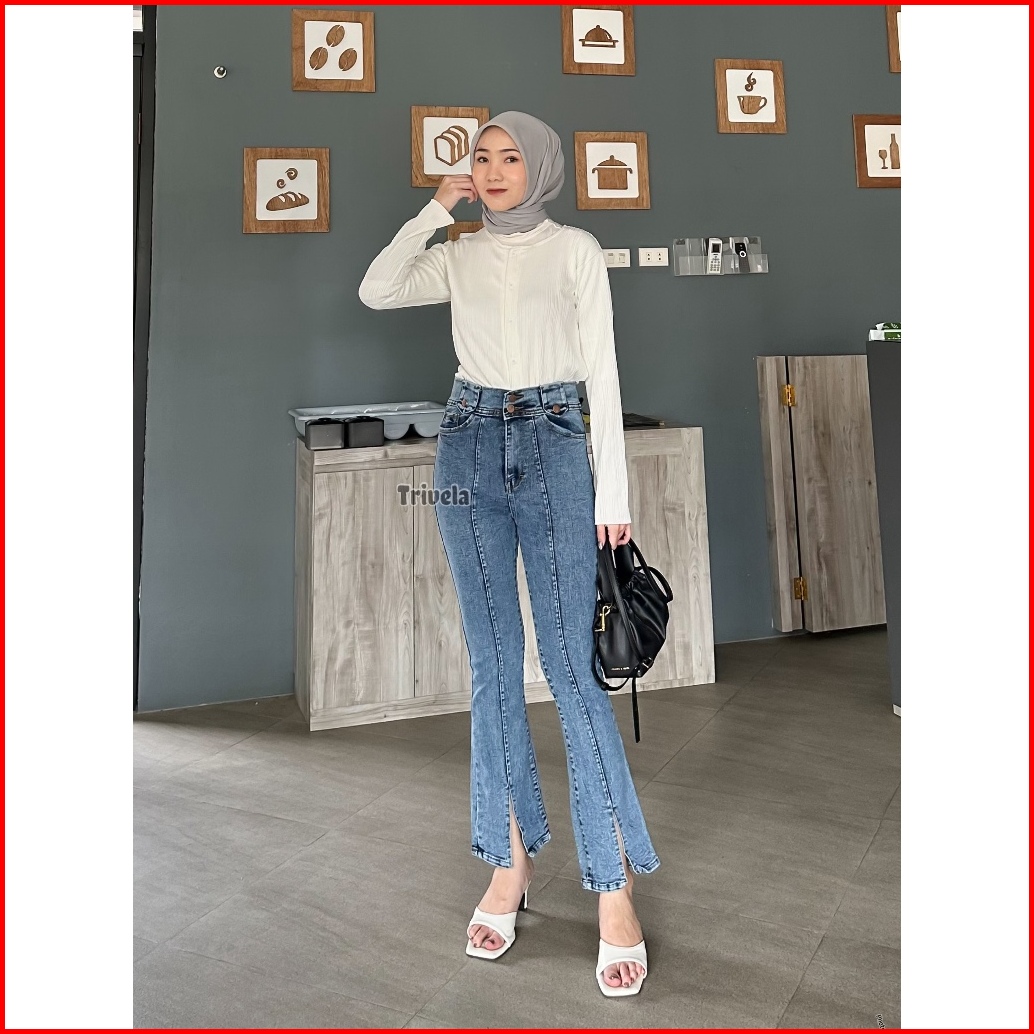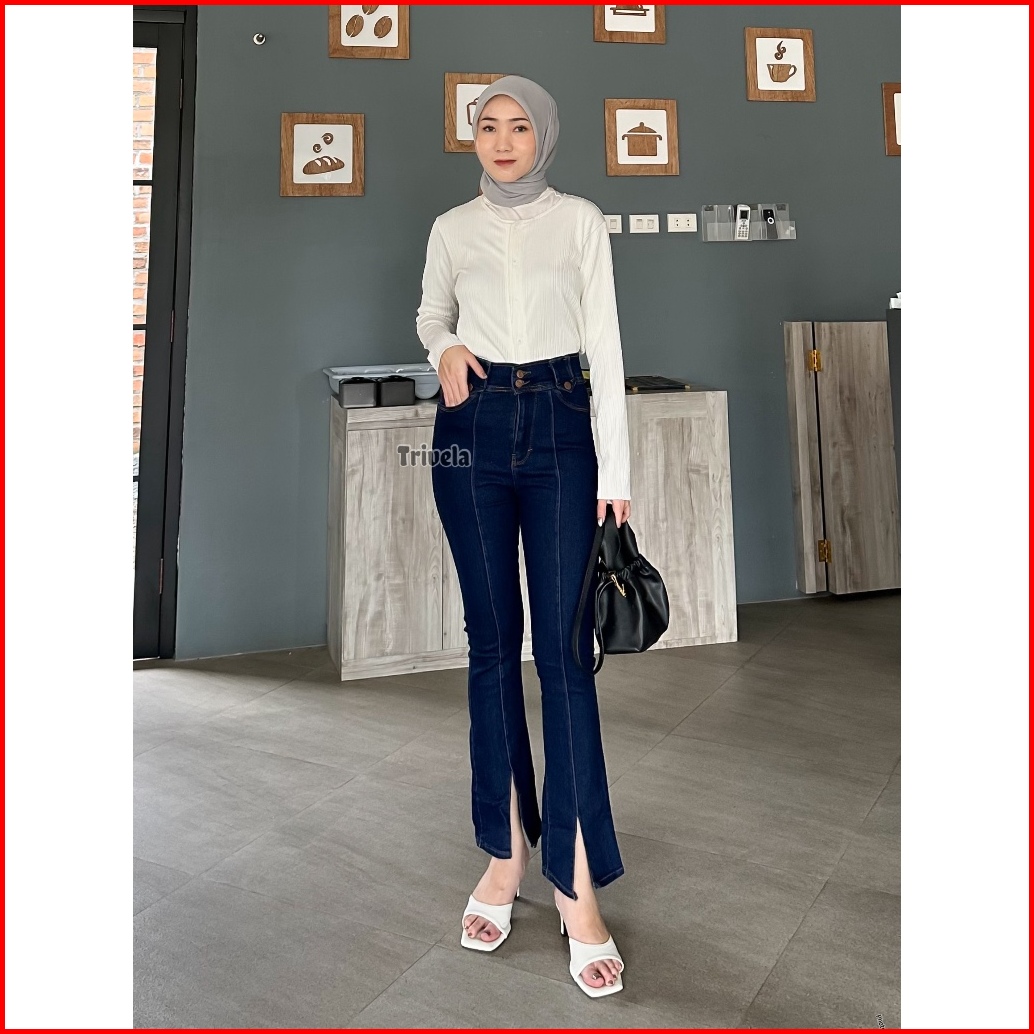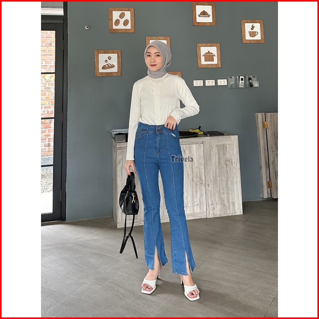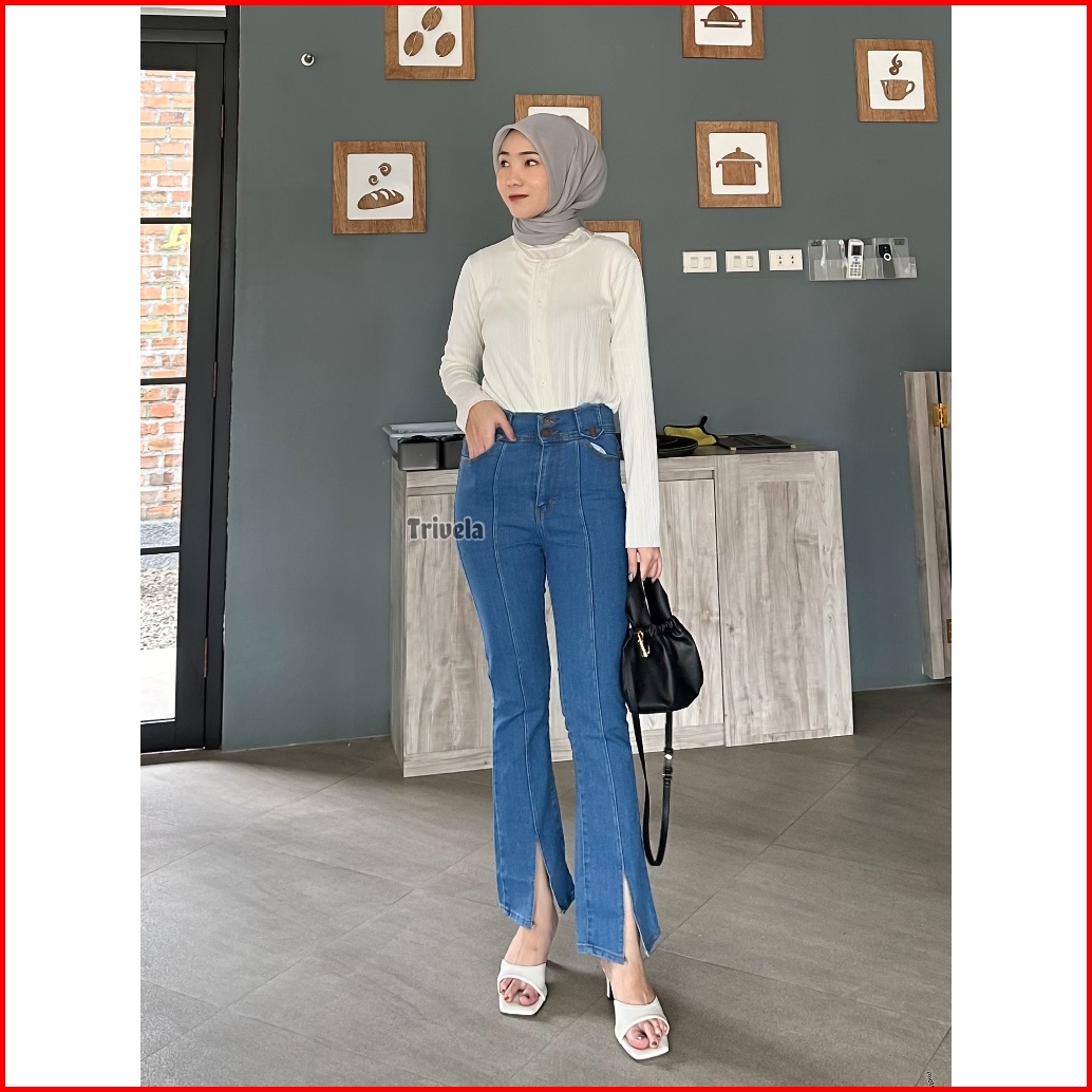 Loose Jeans Cutbray Front Line 27-38 L Celana Jeans Cutbray Loose Wanita Belah Anti Ngatung L Elsa Cutbray Jeans L Celan