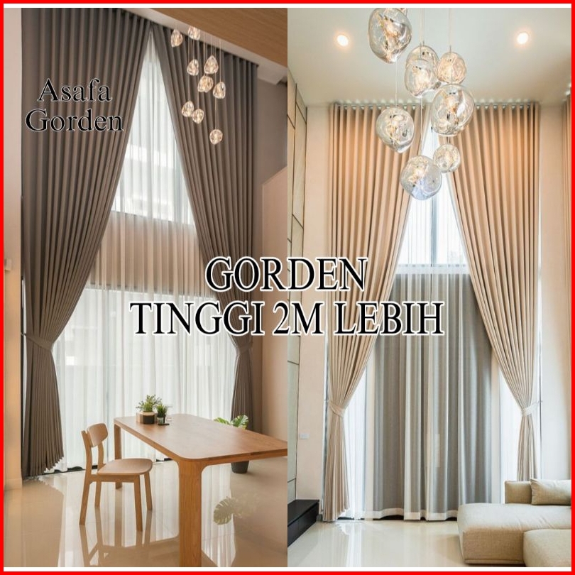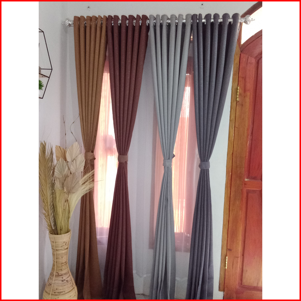 Gorden Polos Tinggi 2m Lebih Bahan Blackout Safron Hordeng Pintu Tirai Jendela Minimalis