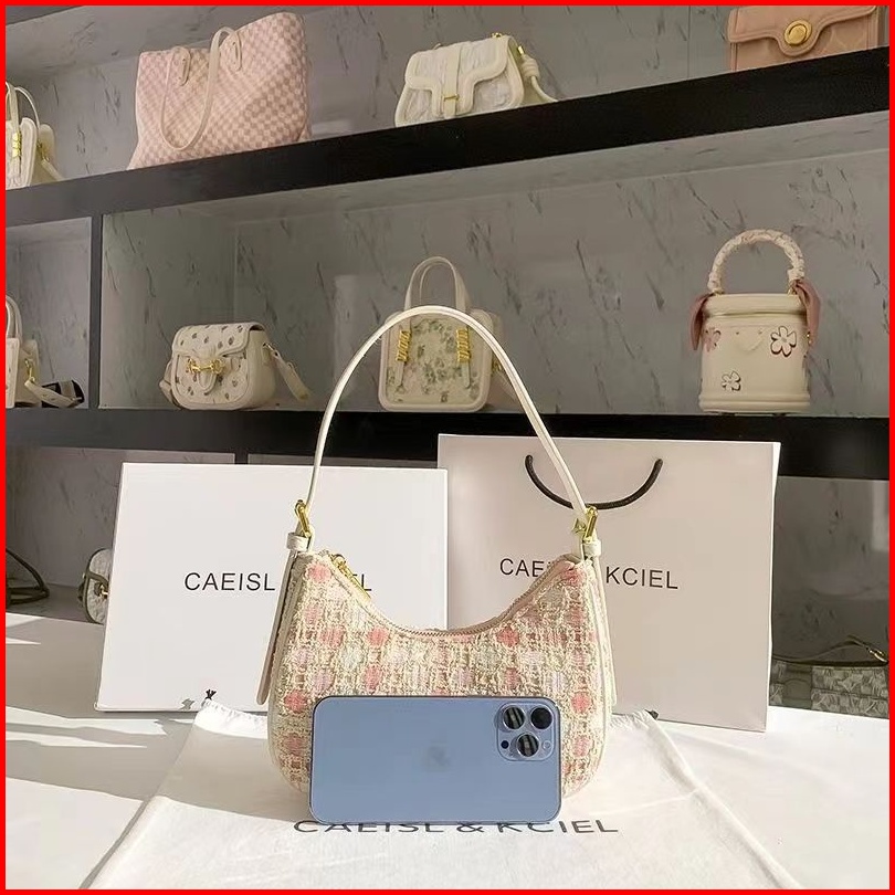 Bao079 Tas Wanita Denim Retro Tas Bahu Jinjing Half Moon Underarm Tas Vintage Tas Elegan Tas Pesta