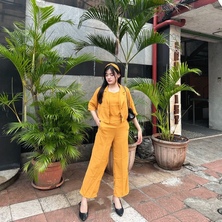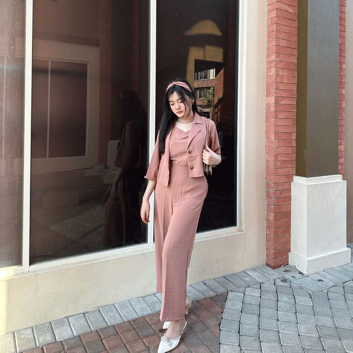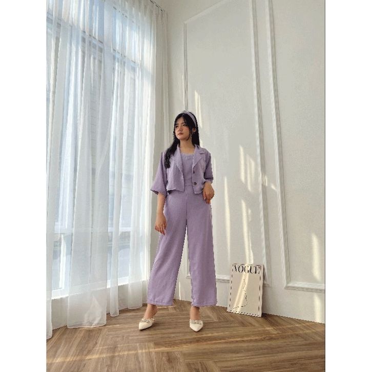 Setelan Wanita Dewasa Viola 3 in1 One Set Outer Celana Panjang One Set Kasual Santai Bahan Crepe Premium