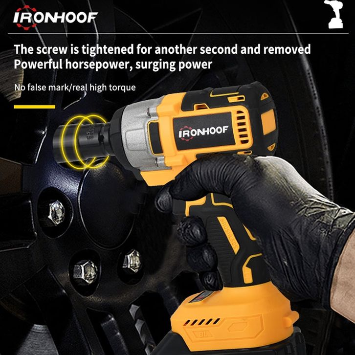 Impact Wrench Brushless 388V Cordless Impact Baterai Mesin Bor Untuk Baut Mobil Impek Baterai Original IRONHOOF
