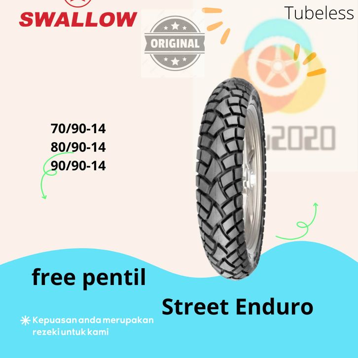 Ban Motor Ring 14 Swallow Street Enduro Tubeless Matic 70 90 / 80 90 / 90 90 Matic Beat Vario Mio Depan / Belakang