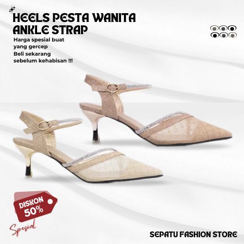 Lawrensia Beatrice Sepatu Heels Pesta Wanita Ankle Strap JY-806-18 Model Kekinain