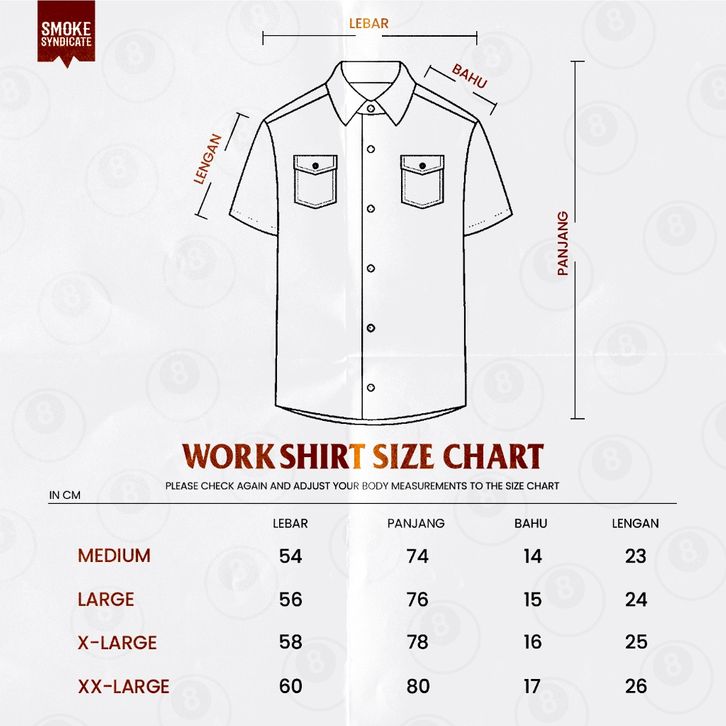 SMOKE Workshirt Pria Hitam Ball Kemeja Pria Lengan Pendek Work Shirt Kemeja Cowok Distro Keren Street Style