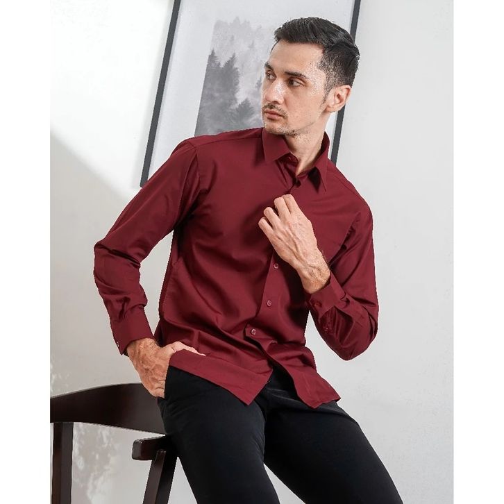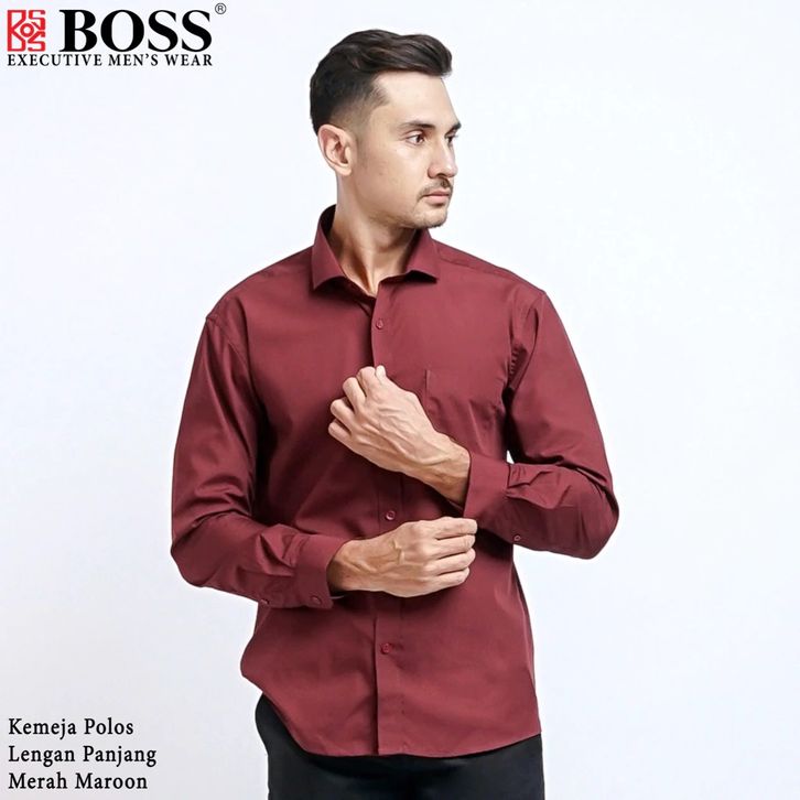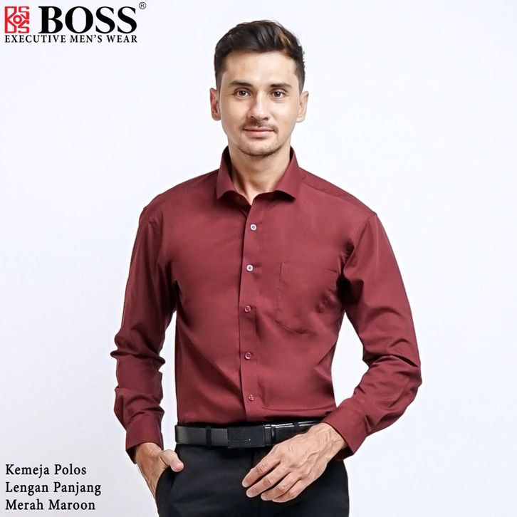 KEMEJA POLOS PRIA LENGAN PANJANG MERAH MAROON BAJU KEMEJA POLOS TERBARU KEMEJA PRIA JUMBO