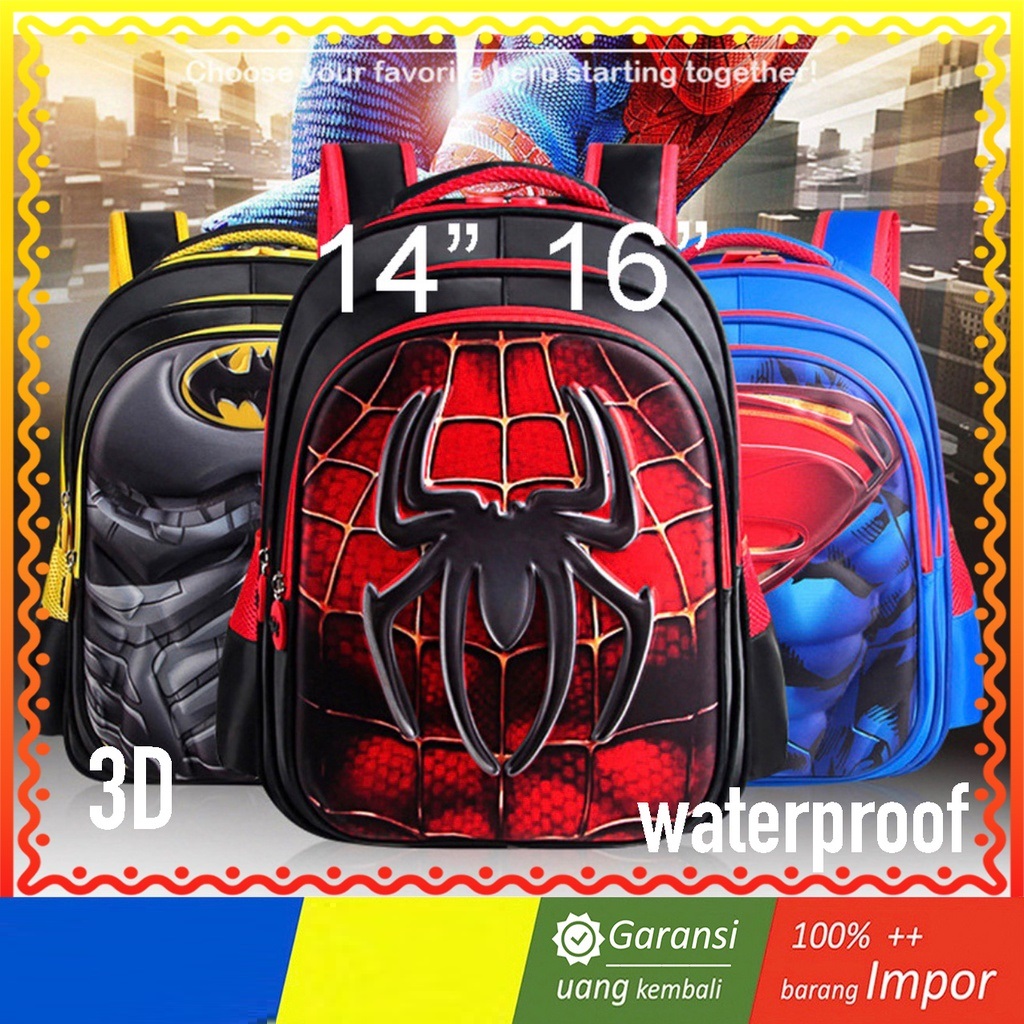 GRATIS ONGKIR Tas Anak Sekolah SD Ransel 3D Size 14" - 16" Besar Avengers Spiderman Batman Captain Impor