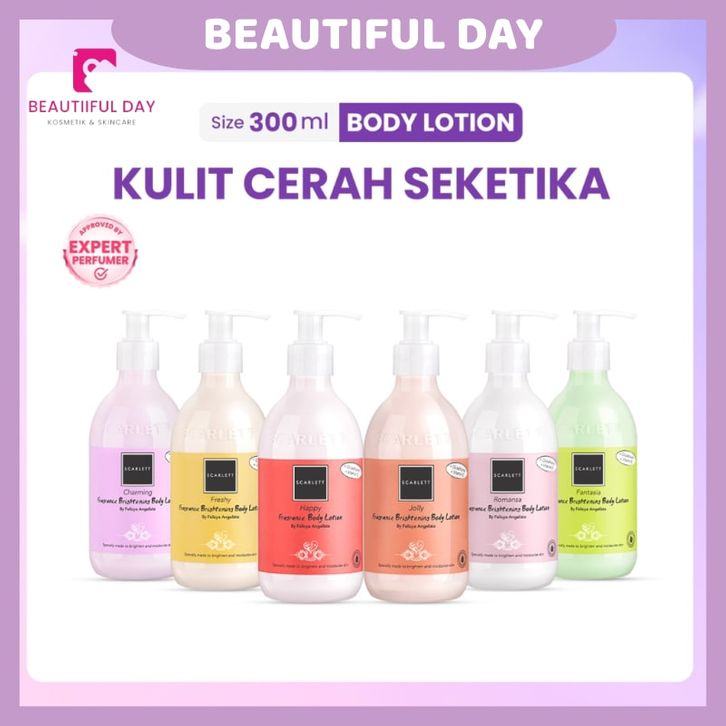 Scarlett Whitening Body Lotion Happy, Jolly, Charming, Romansa, Fantasia, Freshy Melembabkan dan Mencerahkan Tubuh