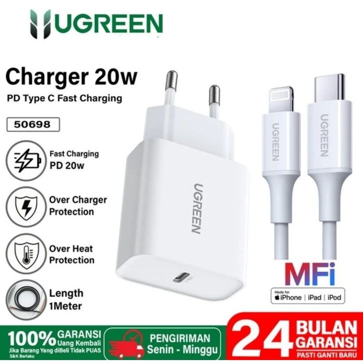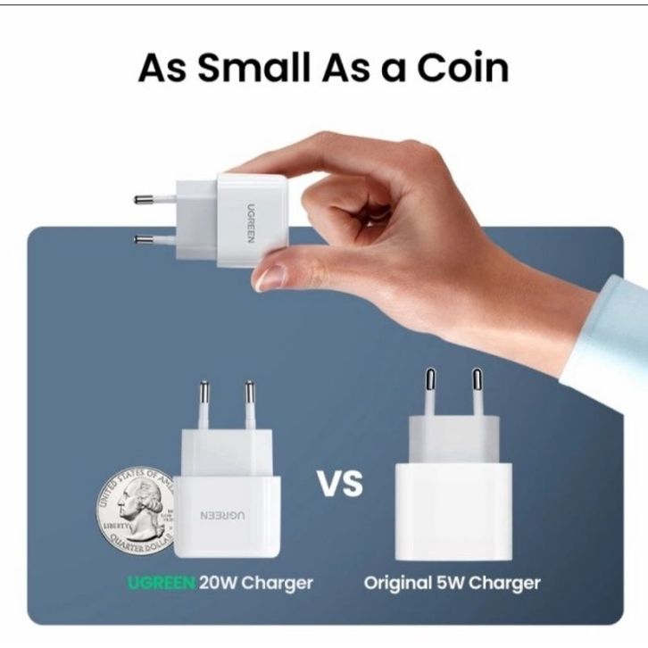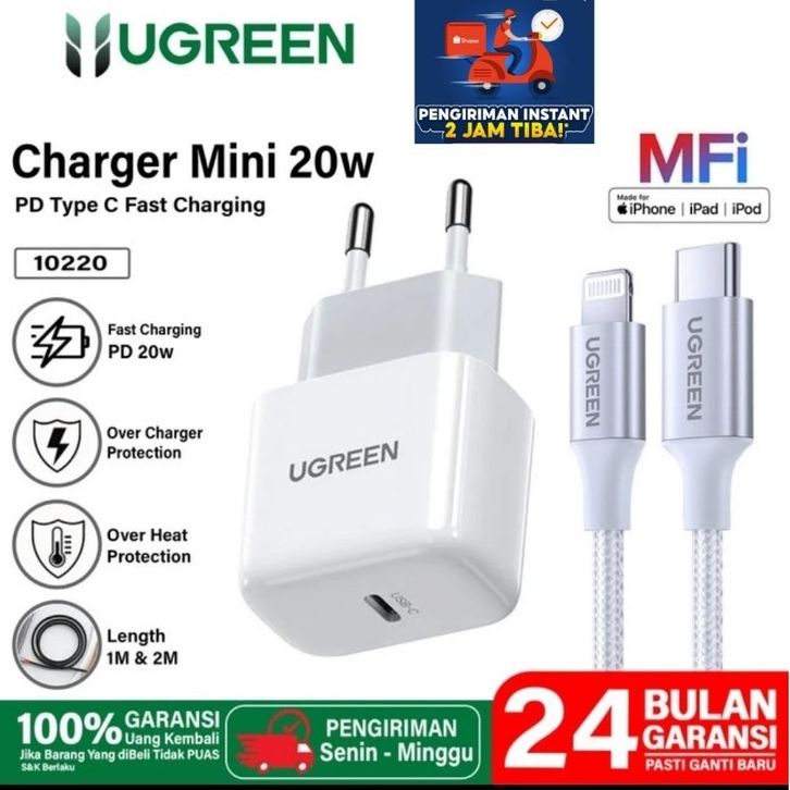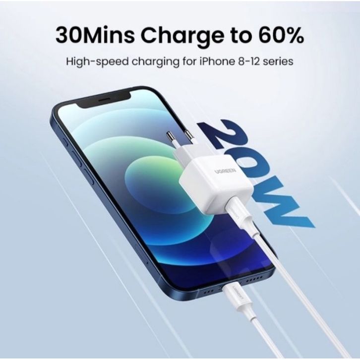 (PROMO) UGREEN CHARGER MINI IPHONE 14 13 12 11 8 X XR XS PRO MAX PD 20W FAST CHARGING