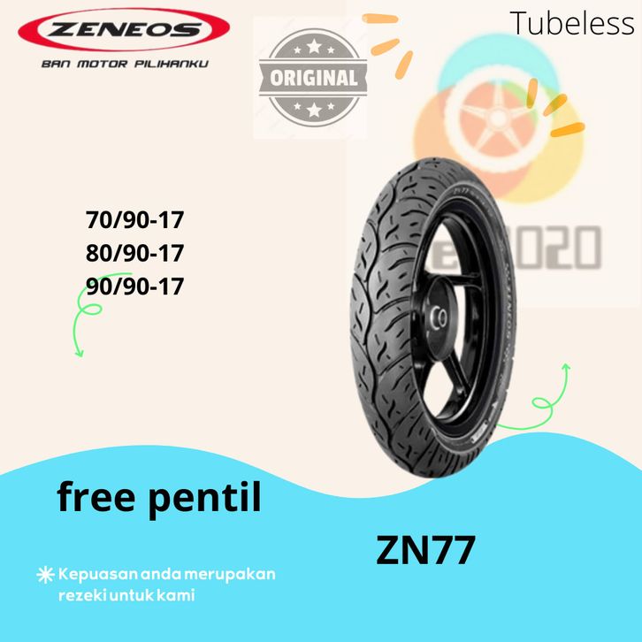 Ban Motor Ring 17 Tubeless Zeneos Zn77 70 90 / 80 90 / 90 90 Supra Vixion Blade Sepasang / Depan / Belakang