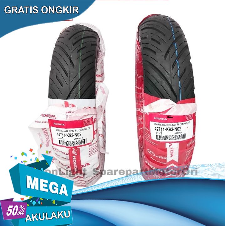 [Mall] BAN LUAR SCOOPY RING 12 DEPAN BELAKANG FREEGO TUBLESS ORI HONDA FEDERAL AHM 100/90-12 110/90-12
