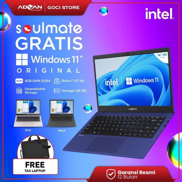 FREE OFFICE 365 Laptop ADVAN SoulmaFREE OFFICE 365 Laptop ADVAN Soulmate 16GB 1.1TB Laptop 14" Intel N4020 Garansi Resmi