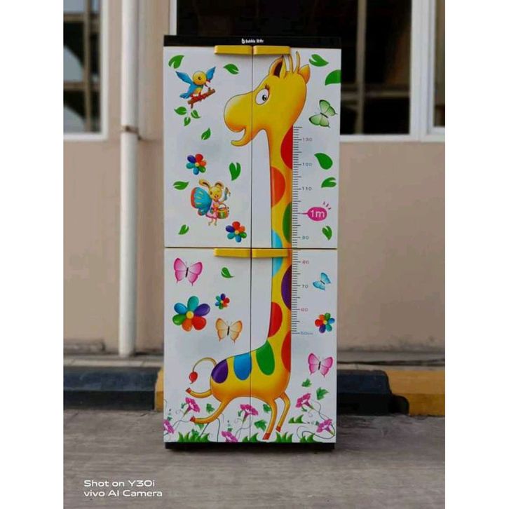 JUMBO BESAR Lemari Pakaian Plastik Karakter Bubble Star Motif Jerapah, Gajah, Dino, Barbie - 4 Susun