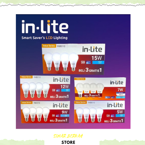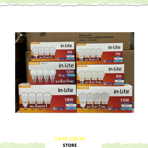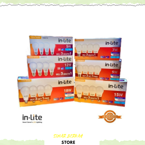 Beli 3 Gratis 1 Lampu Inlite Value Led Series 5W 7W 9W 12W 15W 18W Putih & Kuning