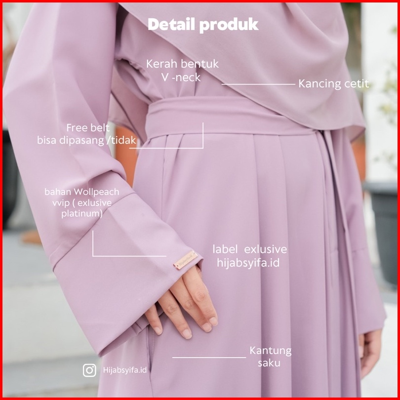 Hitam, Navy, Greyish, Sweet choco, Maroon, Sage green, Hijau Tua, Abu charcoal, Plum, Teracota, Soft lilac, Nude pink, Taro, New moca, Olive, Denim, Rose, Desert taupe, Turqouise, Dove, Putih, Mahogany