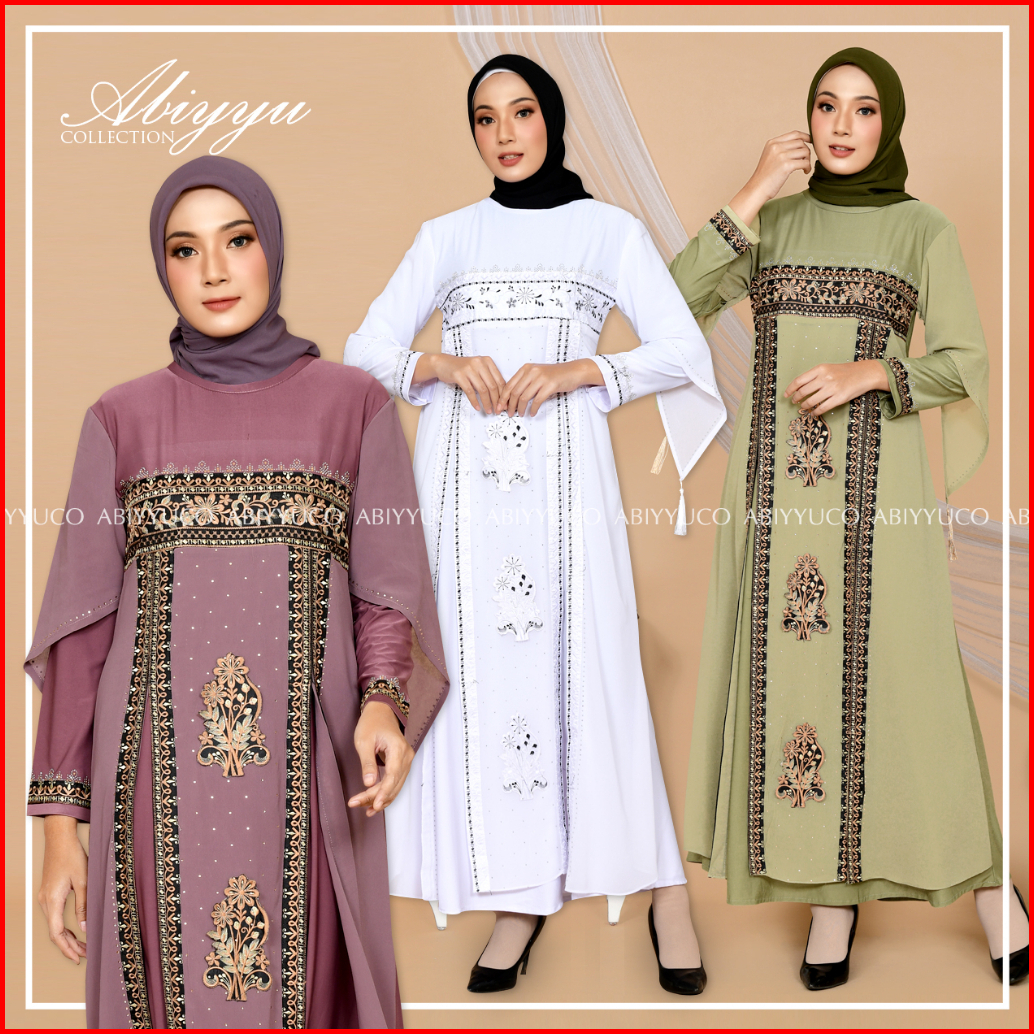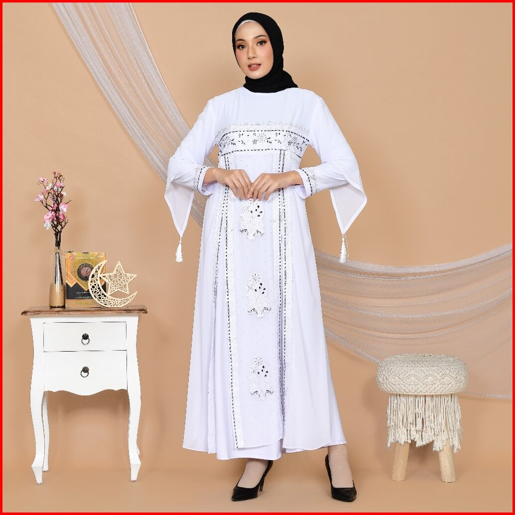 Ta9021 Gamis Abaya Turki Mewah Turkey Bahan Jersey Mix Ceruty Turkiy Putih Hitam Elegan Dan Warna Warni