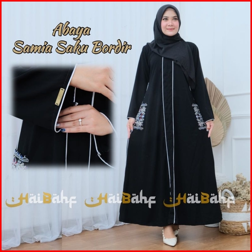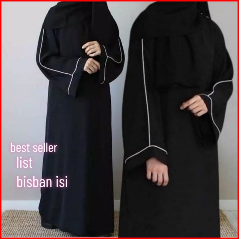 Gamis Abaya Arab Hitam List Busui Bahan Jet Black Saudi Kwalitas Terjamin