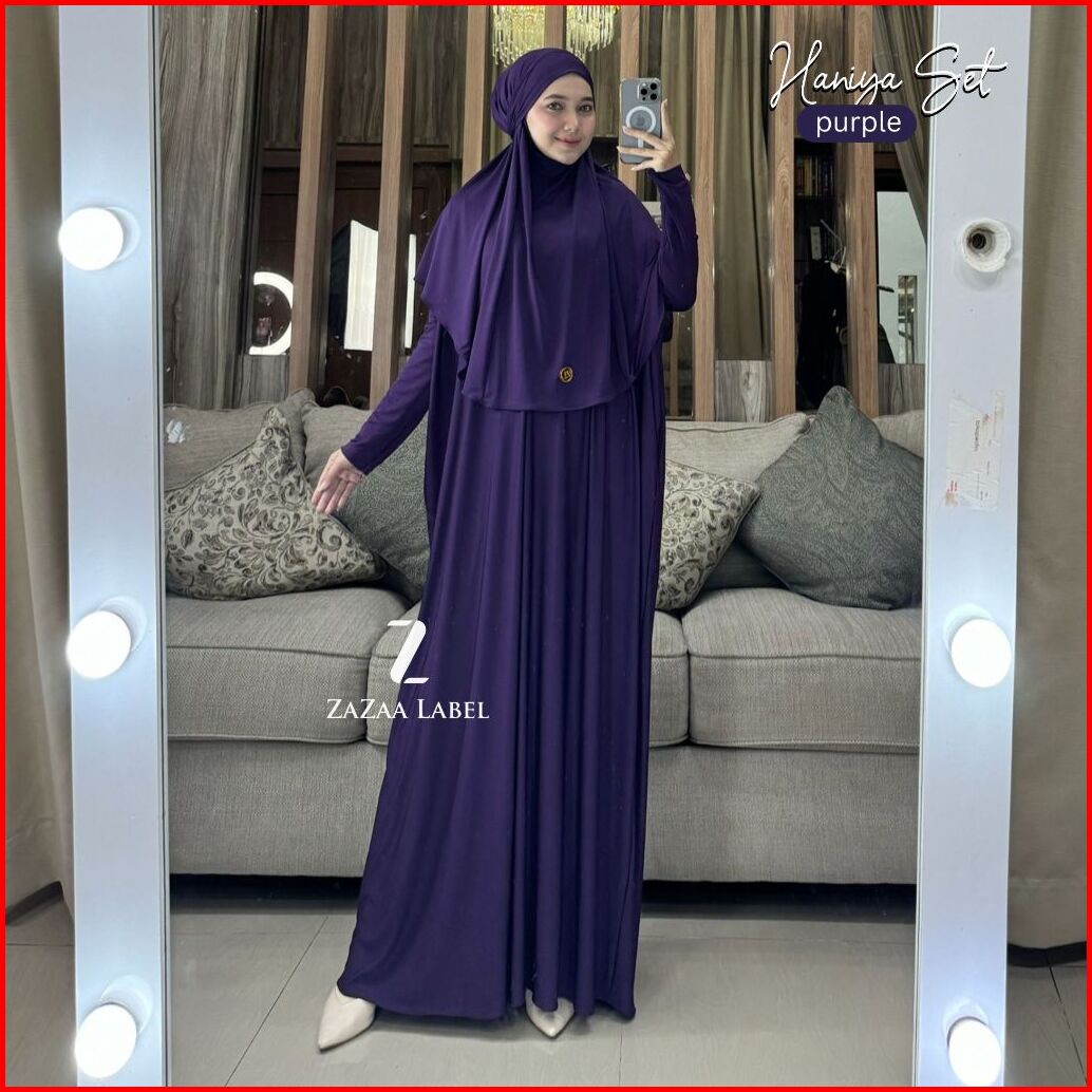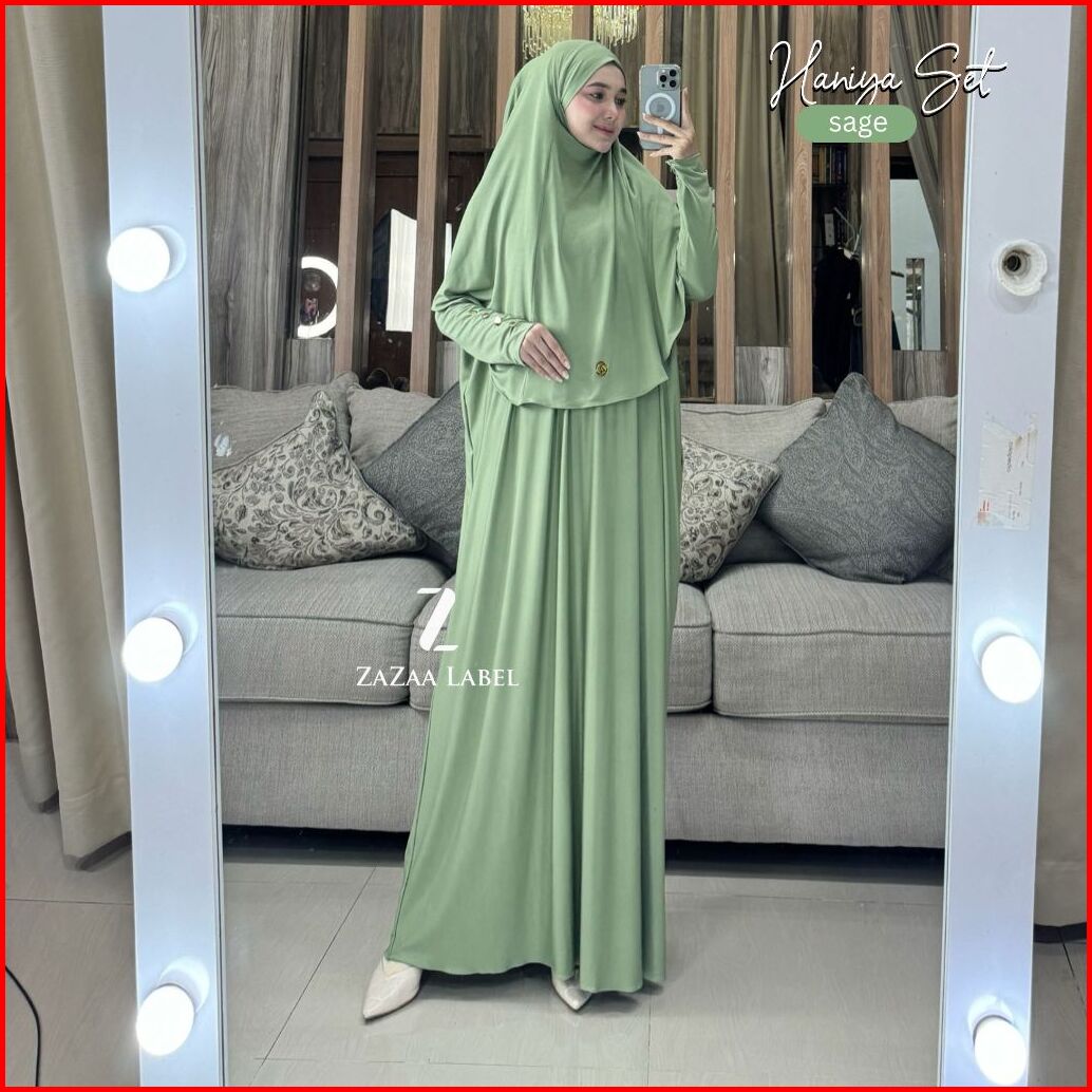Zazaa Label-haniya Jersey Abaya Set Hijab Batwing Casual Wanita Busui Polos