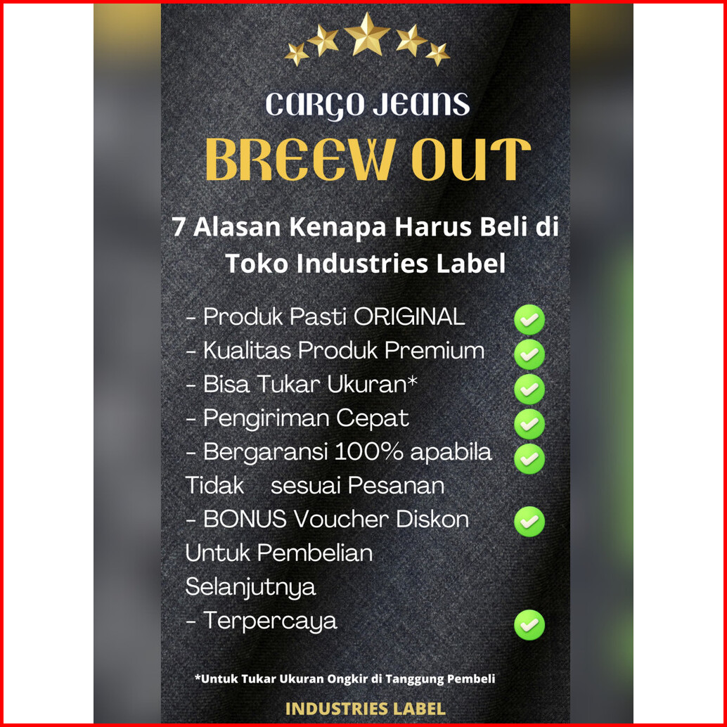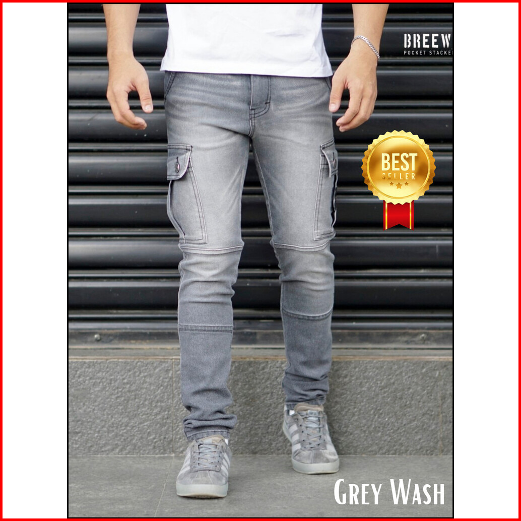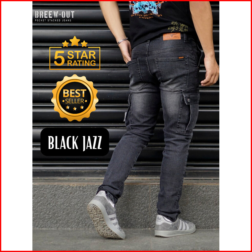 Breew Out Cargo Jeans Pria Original Denim Elastis Cargo Denim Warna Black Jazz Boj001
