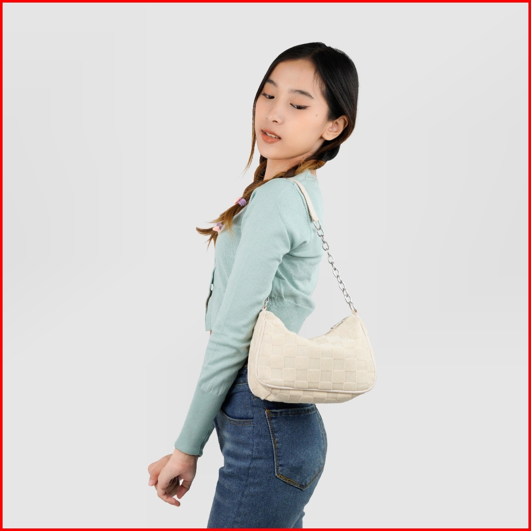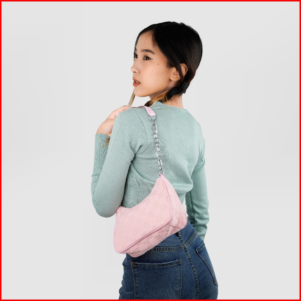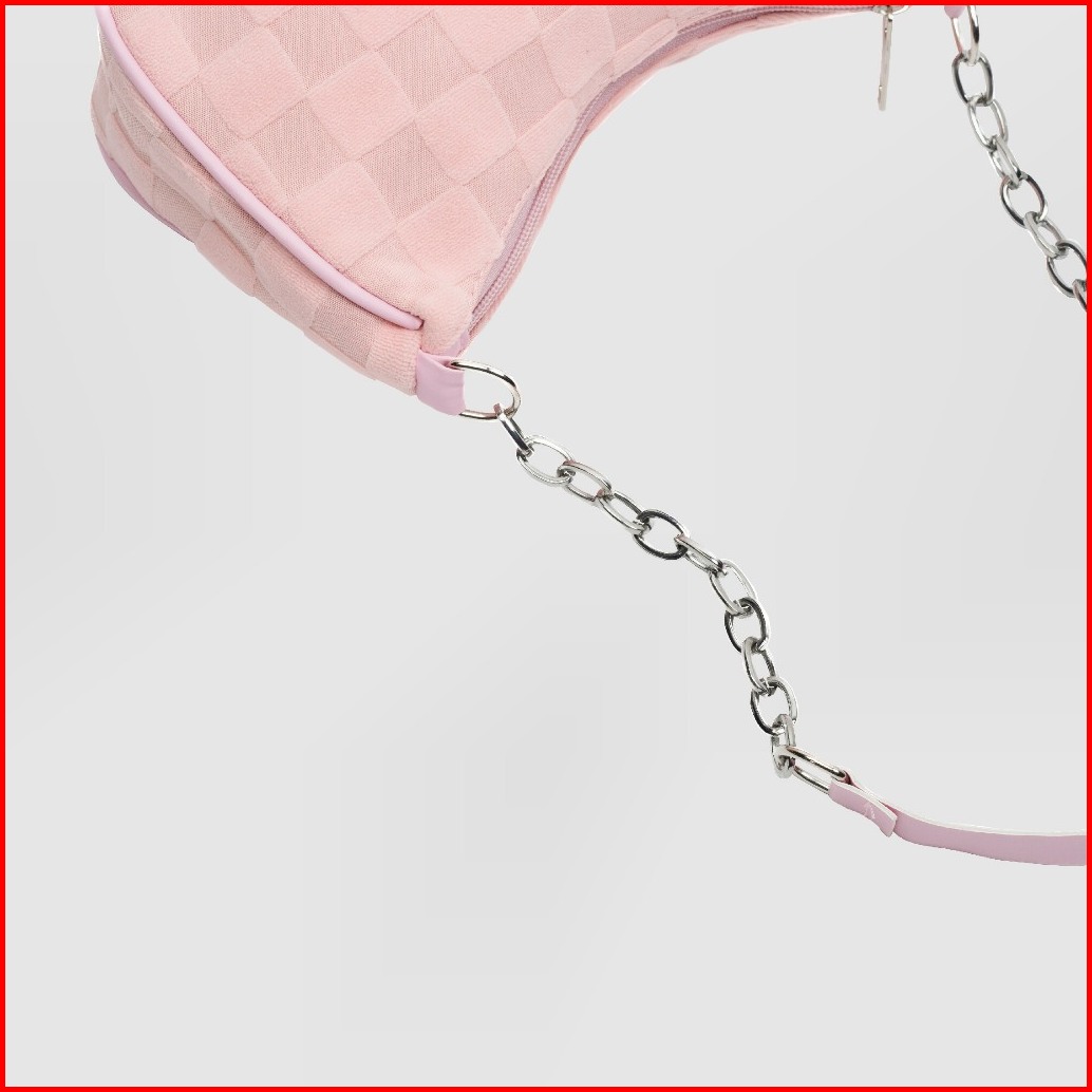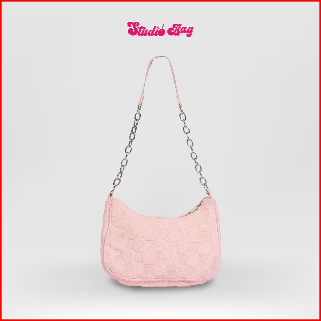 Studiobag - Belle Shoulder Bag Checkerboard Chain Tas Bahu Wanita Pink Underarm Rantai Mini Selempang Catur Korean Style