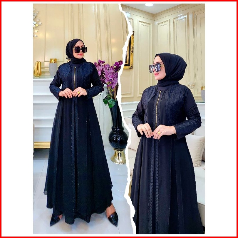Gamis Abaya Turkey Teratai Berkilau Hitam Dan Warna