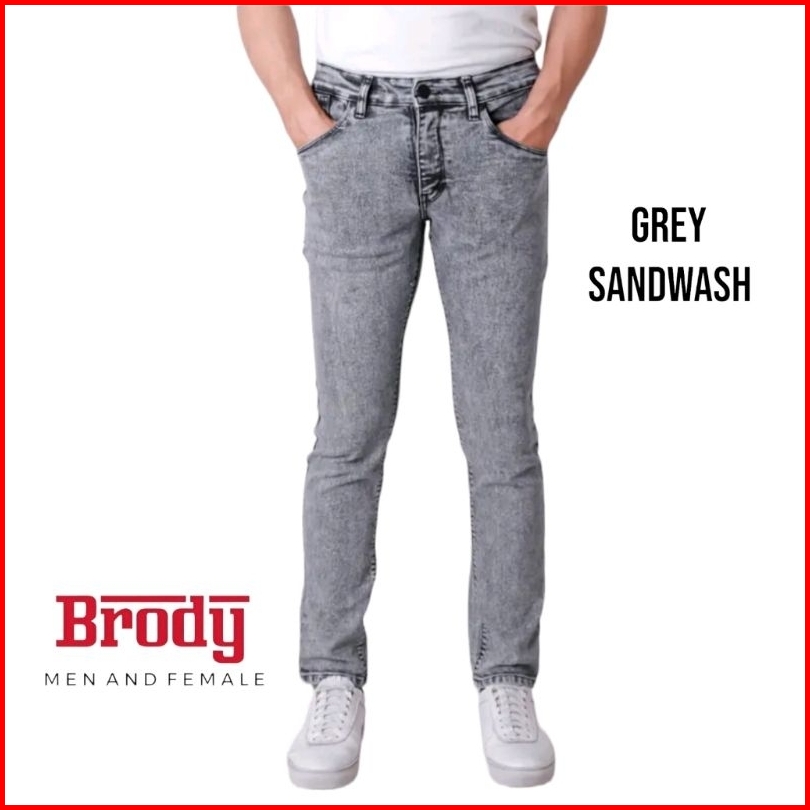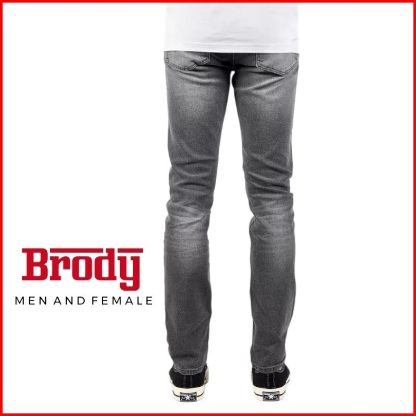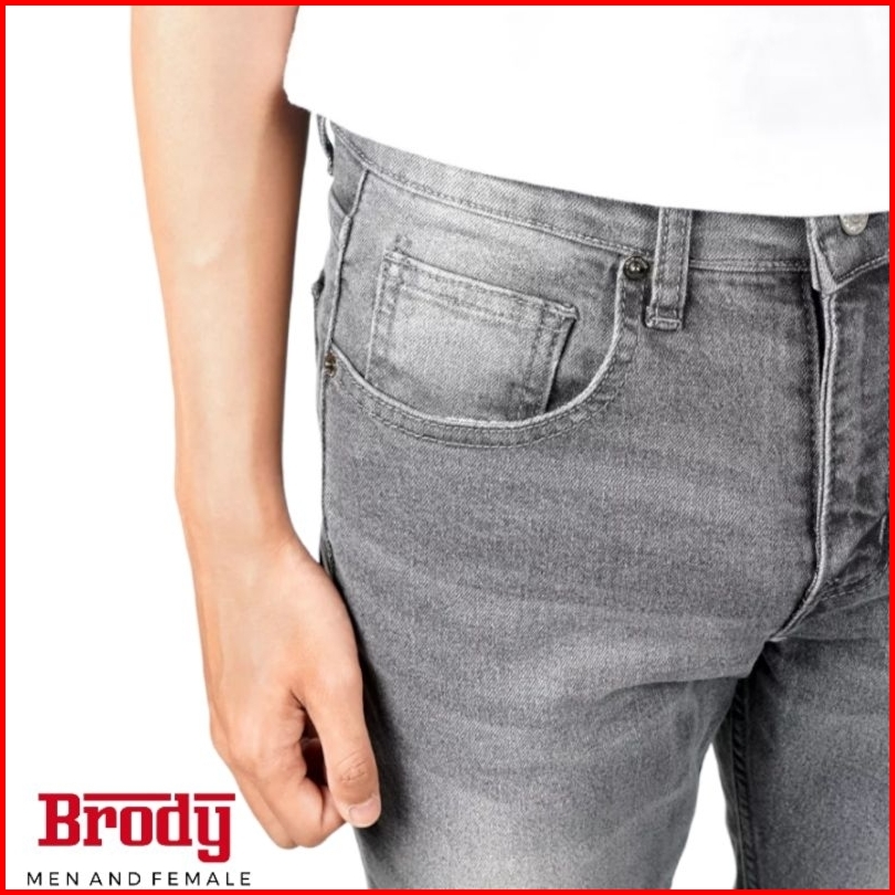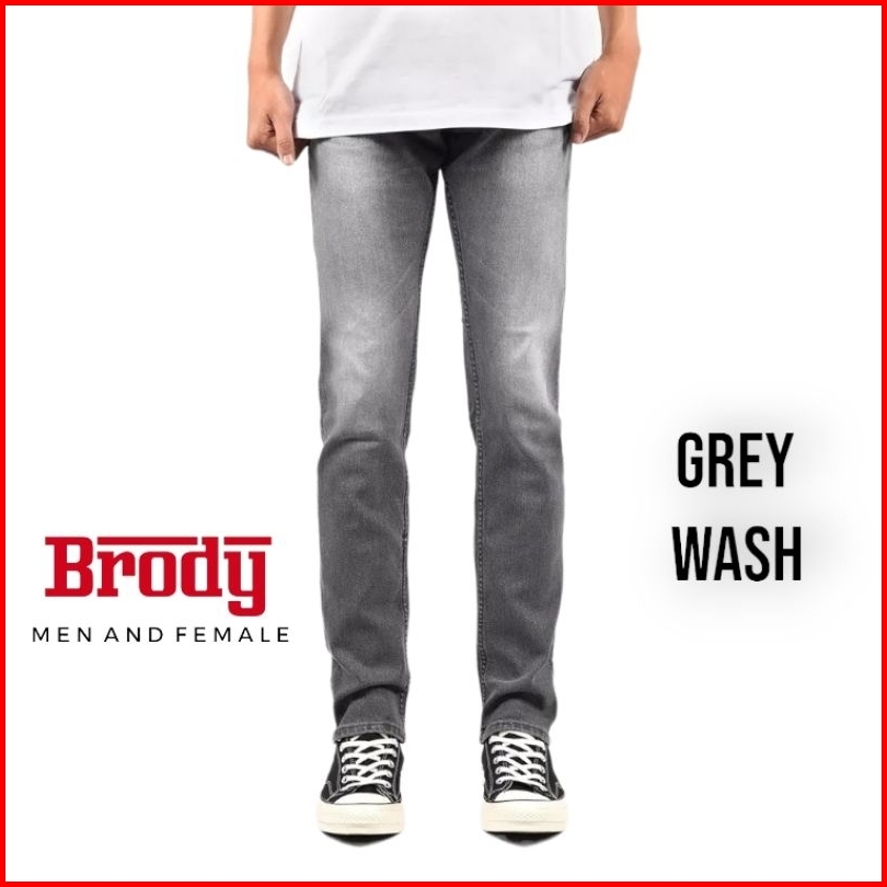 Celana Jeans Pria Bahan Melar Denim Slim Fit Cowok Abu Muda Washing Grey Stone Cerah