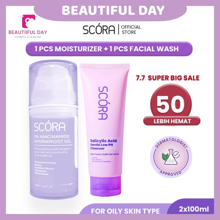 Oily Skin SCORA 5 Niacinamide Hydramoist Gel+SCORA 1 Salicylic Acid Gentle Low pH Cleanser Bundling 2 Pcs KUALITAS