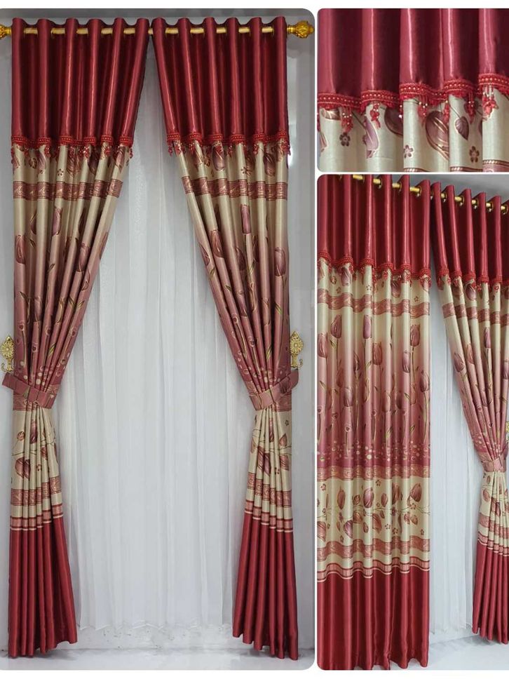 Gratis ongkir - Gorden Jendela Premium Tebal Aesthetic Bunga Tulip Poni Mewah Pintu Kamar Minimalis Panjang 225X135