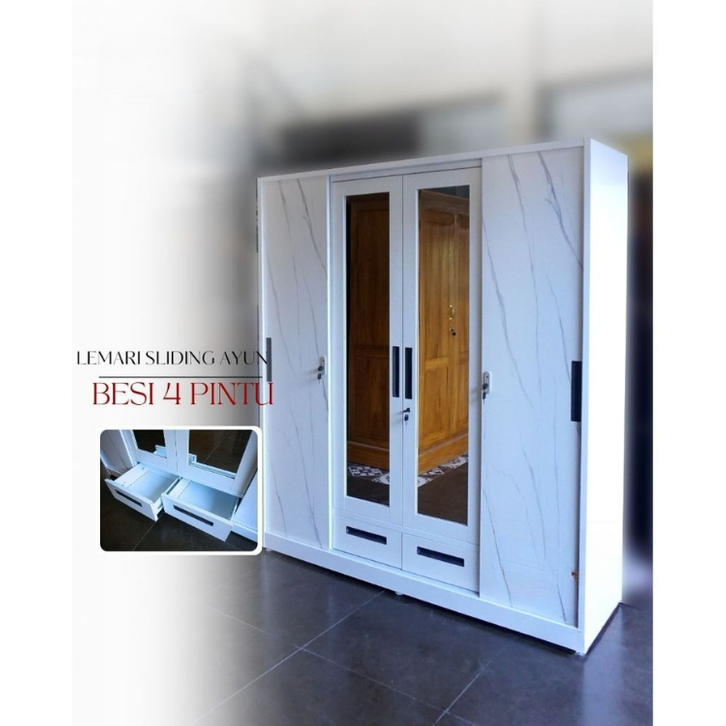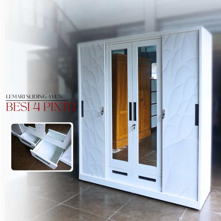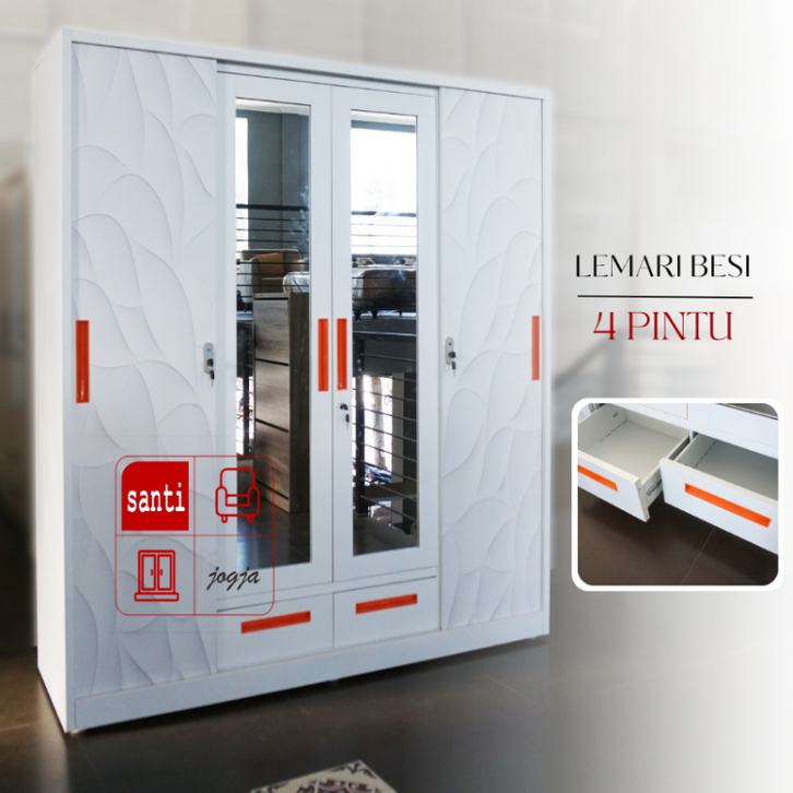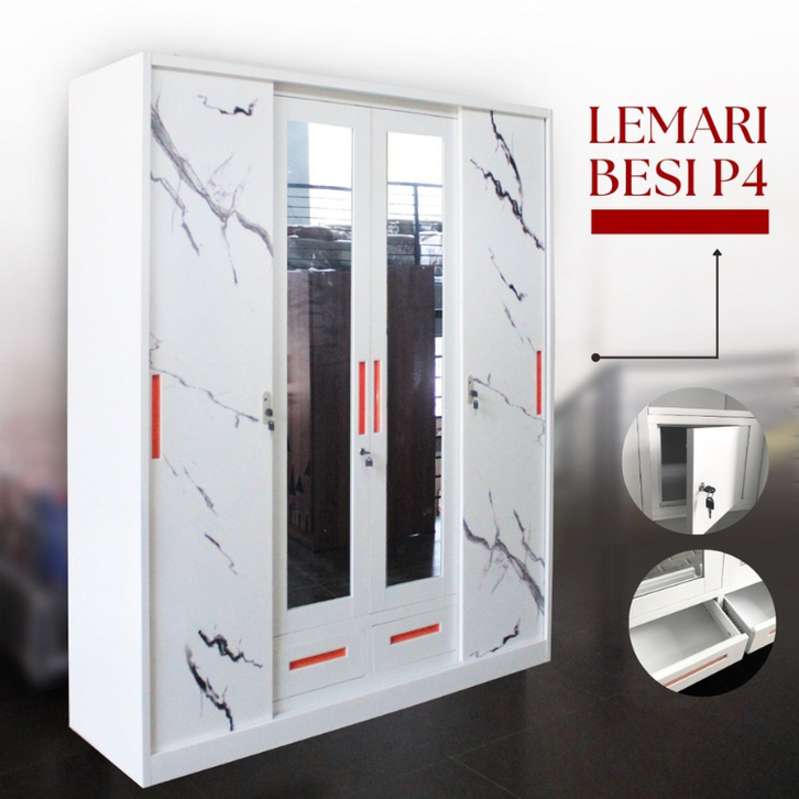 LEMARI PAKAIAN BESI 4 PINTU ANTI JAMUR TAHAN LAMA