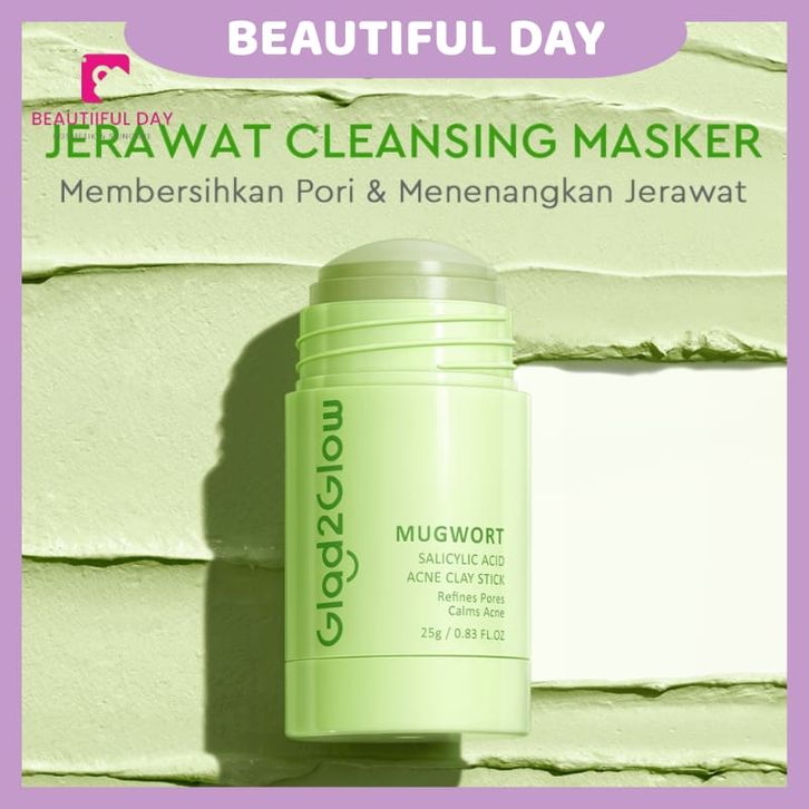 Glad2Glow Mugwort Clay Mask Masker Wajah Face Cleansing Green Mask Stick Salicylic Acid Anti Pores&Acne Jerawat Komedo