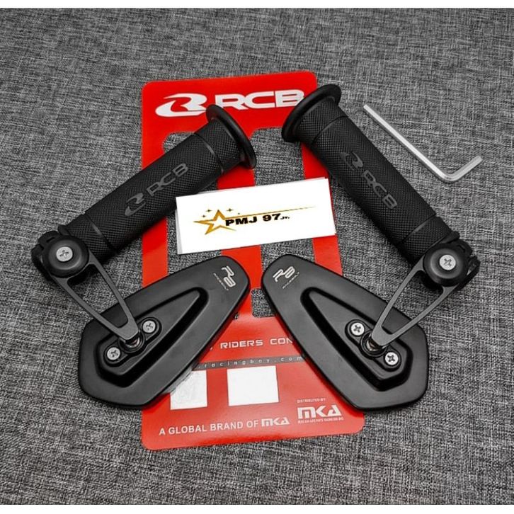 PAKET HANDGRIP + SPION JALU UNIVERSAL SEMUA MOTOR / SARUNG GAS RCB RACING BOY HG55 / SPION OVAL BAR END / PAKET 2IN1