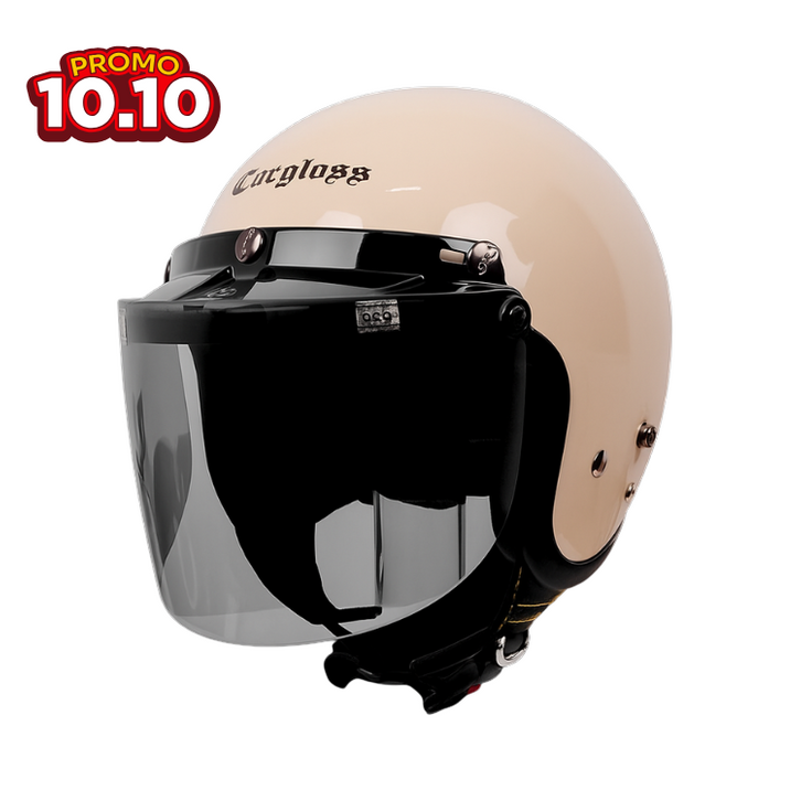 HELM CARGLOSS ORIGINAL CFM RETRO AVORIO NAIDE VISOR FLAT SMOKE - HELM BOGO HALF FACE CARGLOSS ORIGINAL OFFICIAL STORE