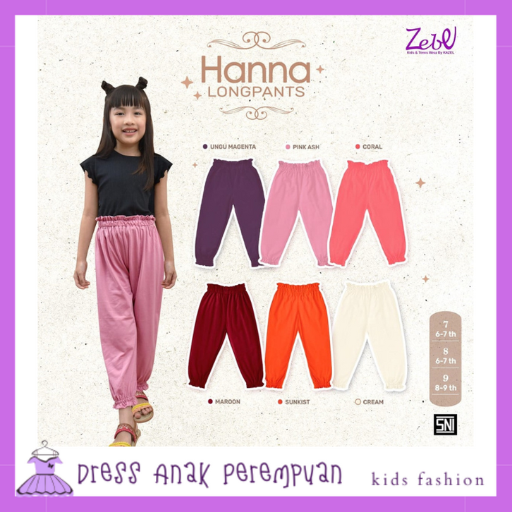 ZEBE Hanna Longpants 6-9 Tahun Celana Panjang Adem Fashion Anak Perempuan